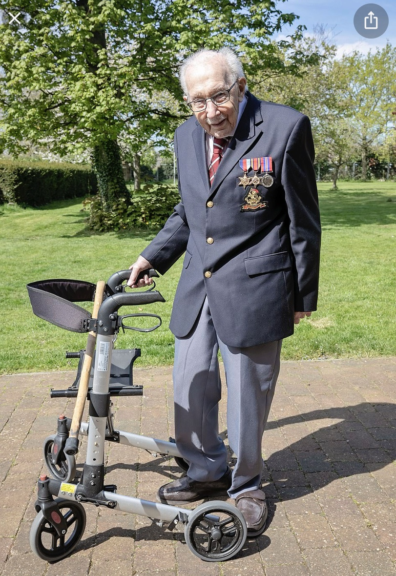 톰 무어(Tom Moore)는 현재 99세로 세계 2차 대전 참전 용사이다. 오는 4월 30일 100세 생일을 맞아 가족과 함께 특별한 생일 파티를 계획했다. 하지만 코로나 19 발생으로 영국 전역에 이동 제한(Lockdown) 조치가 내려지면서 가족마저 한자리에 모일 수 없게 되었다. 할아버지는 생일 파티 대신 코로나19와 싸우고 있는 NHS 의료진을 위해 기부 챌린지를 결심했다.