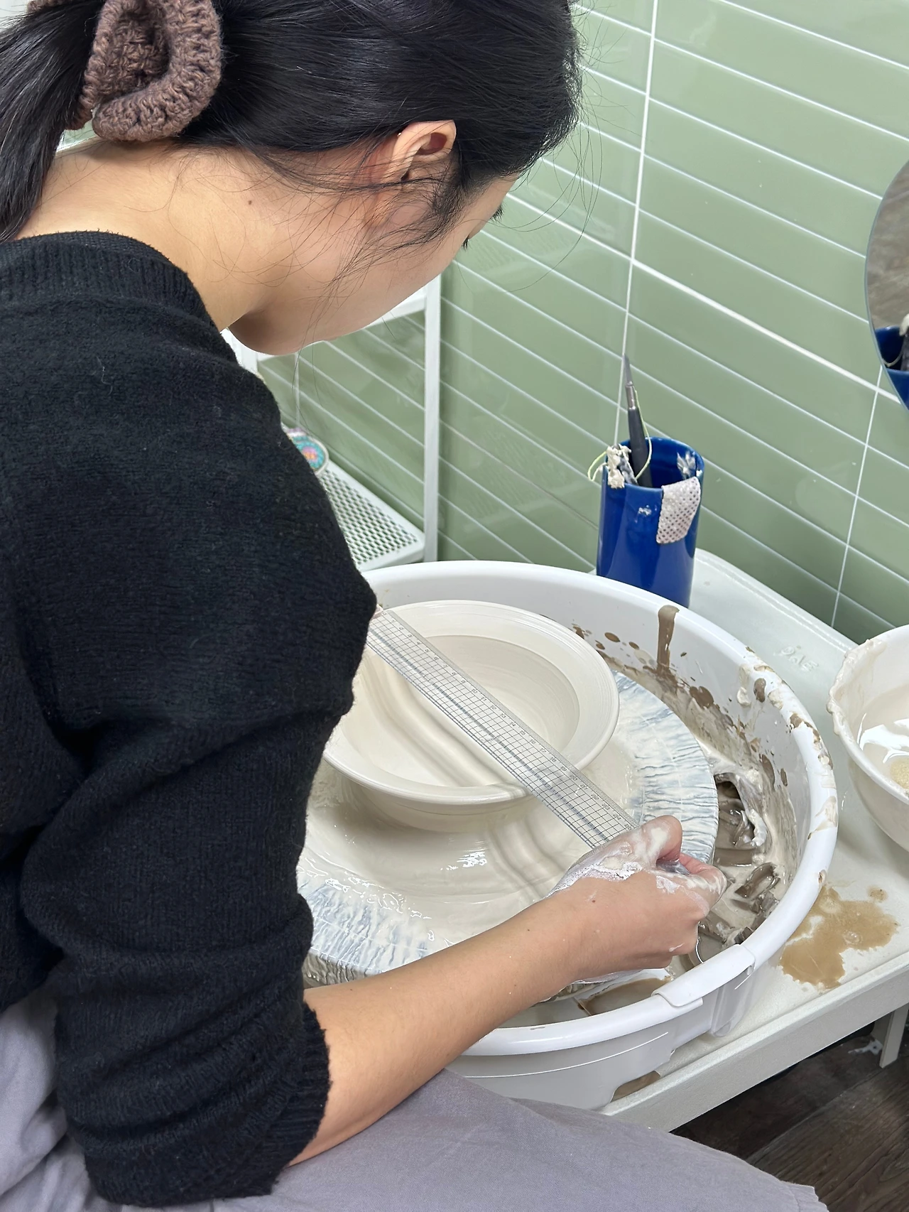 처음으로 대형 기물을 만들었다. 파스타 접시다. 접시는 초벌, 재벌을 할 때마다 조금씩 수축하기 때문에 처음에 조금 과하다 싶을 정도로 크게 만들어야 우리가 원하는 사이즈가 된다. 이게 조금 어렵다.