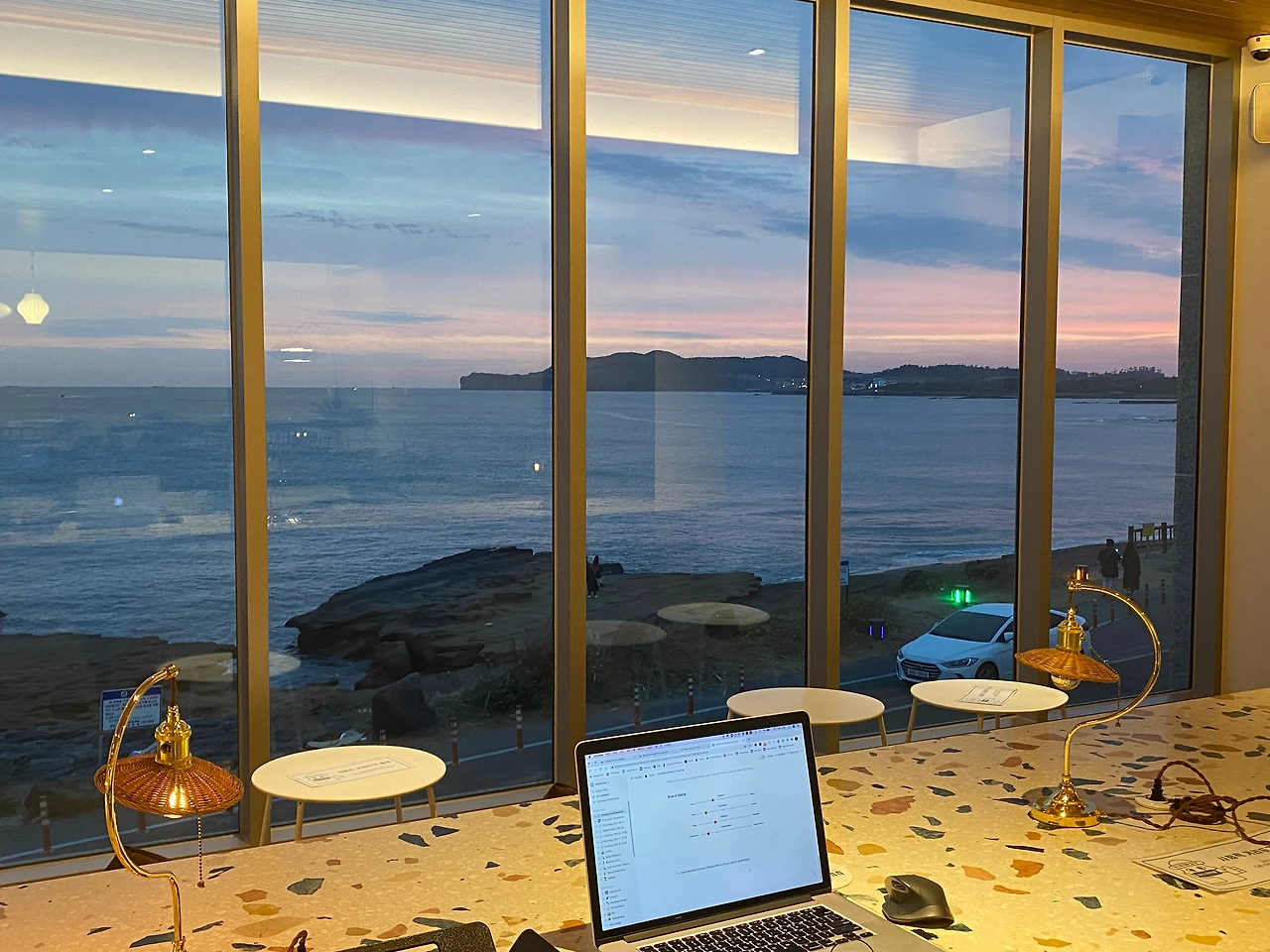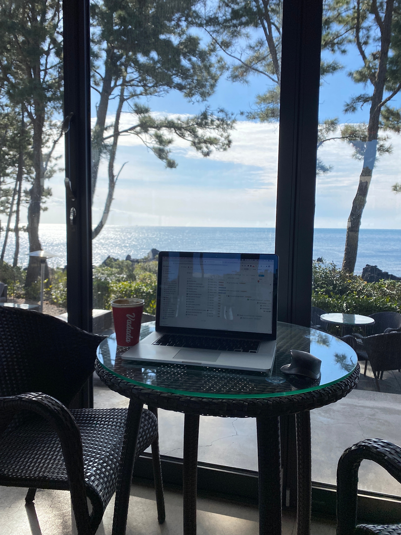 또 원격으로 근무했기에 근무 공간의 제약이 없었습니다. 그래서 저는 본가인 제주도에서 거주하며 근무했고, 처음으로 디지털 노마드로서의 삶을 경험하기도 했습니다. 사실 그 당시에는 지금이 아니면 이렇게 디지털 노마드로 살 기회가 있을까 하고 내려갔는데 요새는 코로나로 인해 원격 근무를 하는 회사가 많아져서 상당히 일반적인 모습이 된 것 같습니다. 초반에는 집에서 일하거나 카페를 돌아다니면서 근무하다가 후반에는 운영 측에 제주 사계에 있는 공유 오피스 지원을 요청하고 공유 오피스로 출퇴근했습니다.