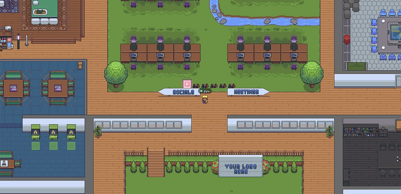 게더타운은 ‘바람의 나라’가 떠오르는 굉장히 귀여운 비쥬얼을 갖고 있습니다. 화상회의 플랫폼에 메타버스 요소가 결합된 형태로 캘리포니아 스타트업 게더가 만든 메타버스 플랫폼입니다. 온라인 가상 공간에서 마치 2D 게임처럼 캐릭터를 만들어 다른 사람들과 소통할 수 있고, 공간과 캐릭터 모두 자유롭게 커스터마이징 할 수 있다는게 특징입니다. 구성원의 규모나 목적에 따라 공간을 꾸밀 수 있습니다.