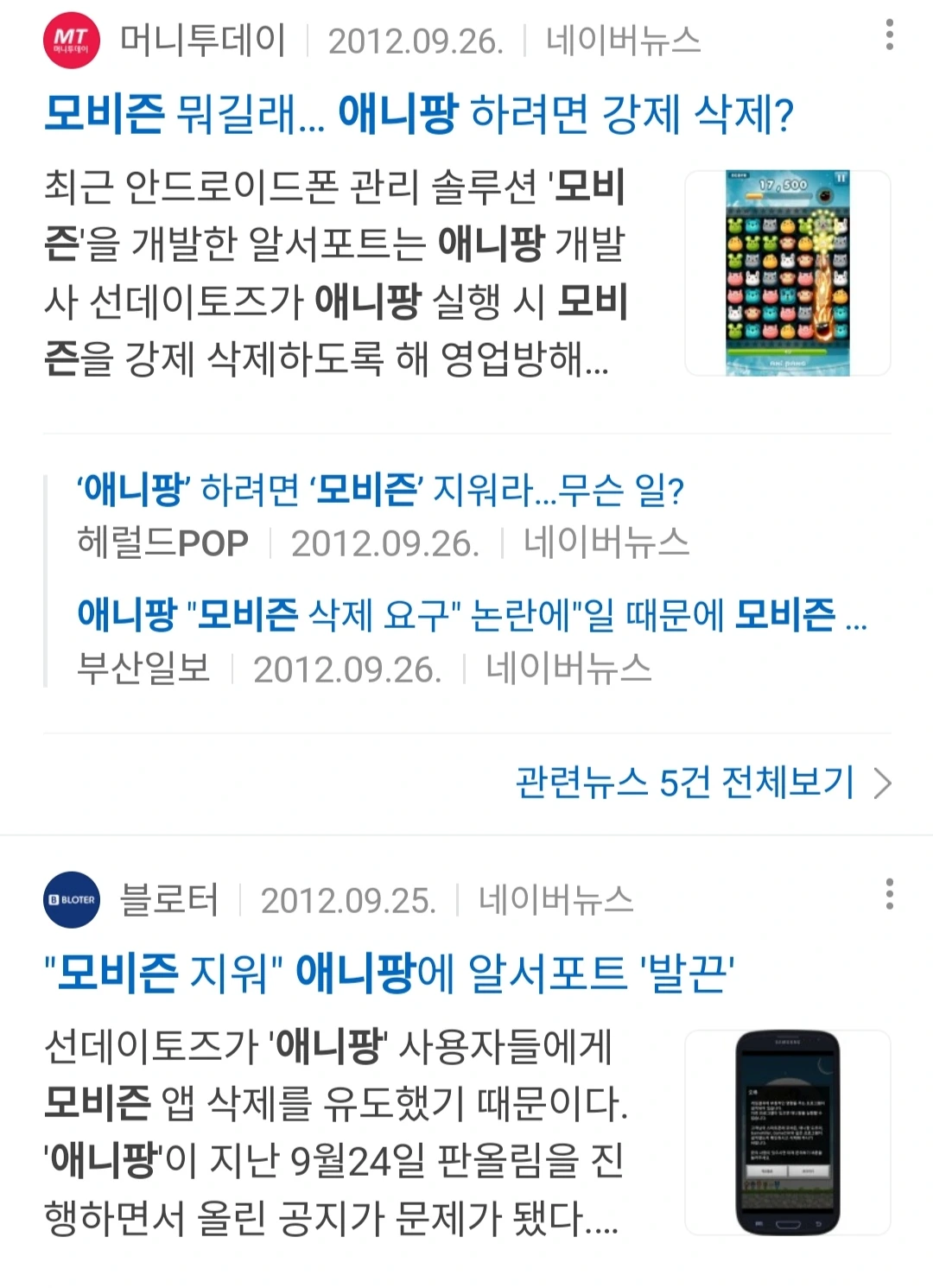네. ‘모비즌 애니팡한테 차단당하다’ 이런 식으로 계속 기사를 만들어서 애니팡과 모비즌을 같이 쓸 수 있게끔 해달라는 이야기를 대중에게 전달했고요. 또 애니팡 측에도 의견을 전달했죠. 그러면서 모비즌이 게임 시장에서 유명해졌어요.