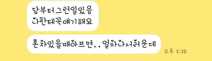 나 여기에서 혼자라는 거 때문에 서럽기도 하고 많이 외로웠는데 오늘 이 연락이 참 마음을 따뜻하게 해 준다.