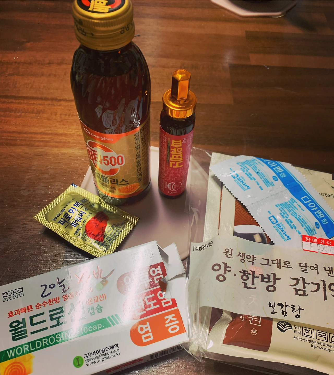 ‘아 이거 큰일이다. 나 아프다.’ 생각은 들었지만 부러 여기까지 와서 만나기로 한터라 취소할 수가 없어 억지로 일어나서 준비를 했다. 내가 컨디션이 안 좋다는 말에 만나기로 한 선생님께서 약이며 과일이며 바리바리 사 오셔서 어제는 그나마 그 약을 먹으며 버텼다. 병원을 갈 걸 그랬나? 생각했지만 사실 병원 갈 시간도 없었다.