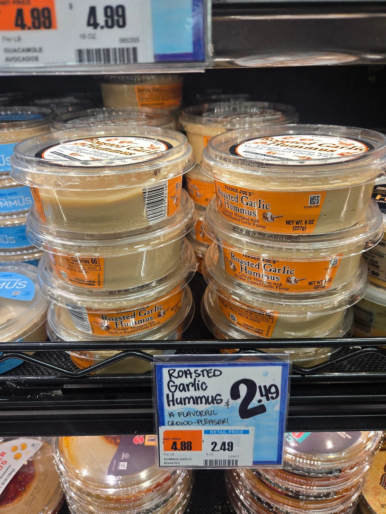 트레이더조에서는 만들어진 후무스를 판매하고 있었습니다. 땅콩호박 후무스가 생경하기도 했고 매장에 없어서, 시판 후무스로 대체했습니다. 가격은 2~3달러 수준으로 저렴합니다.