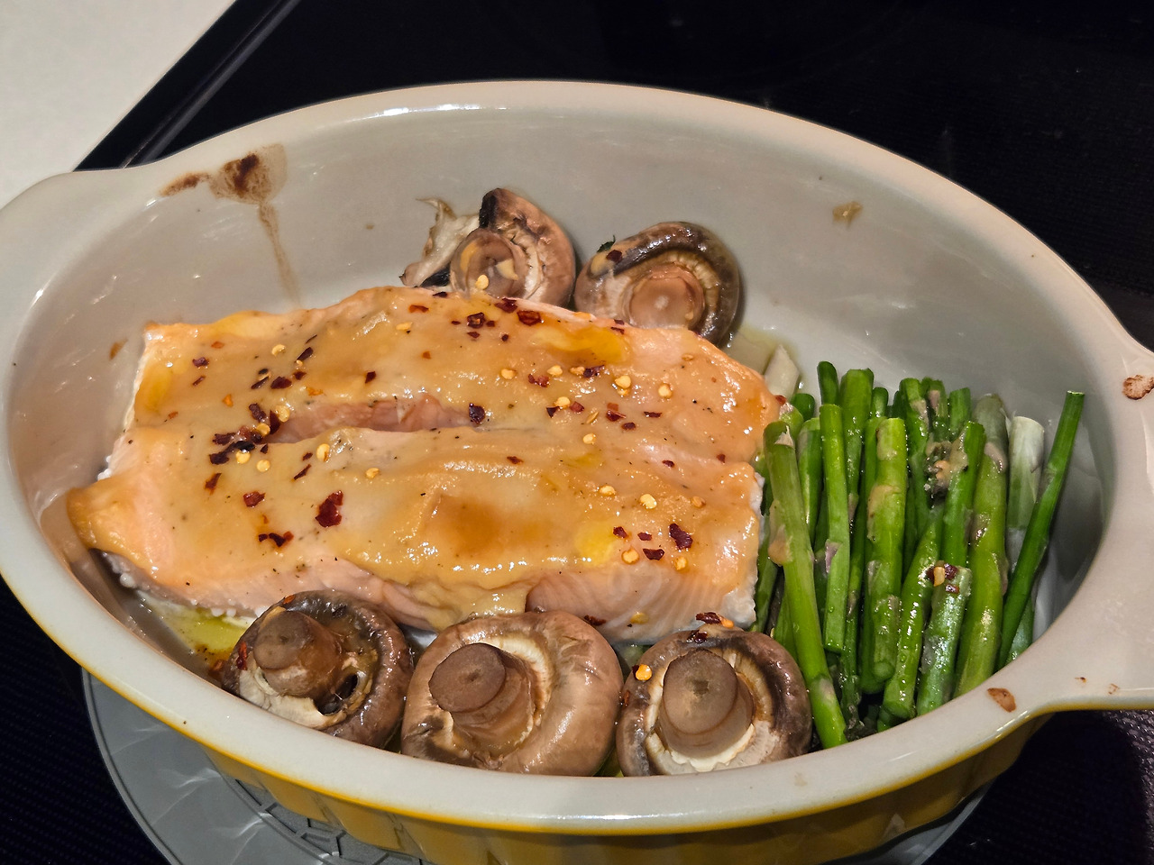 연어만으로 너무 짜다고 생각될 때가 있어서 구운 채소를 곁들이니 좋더라고요.
