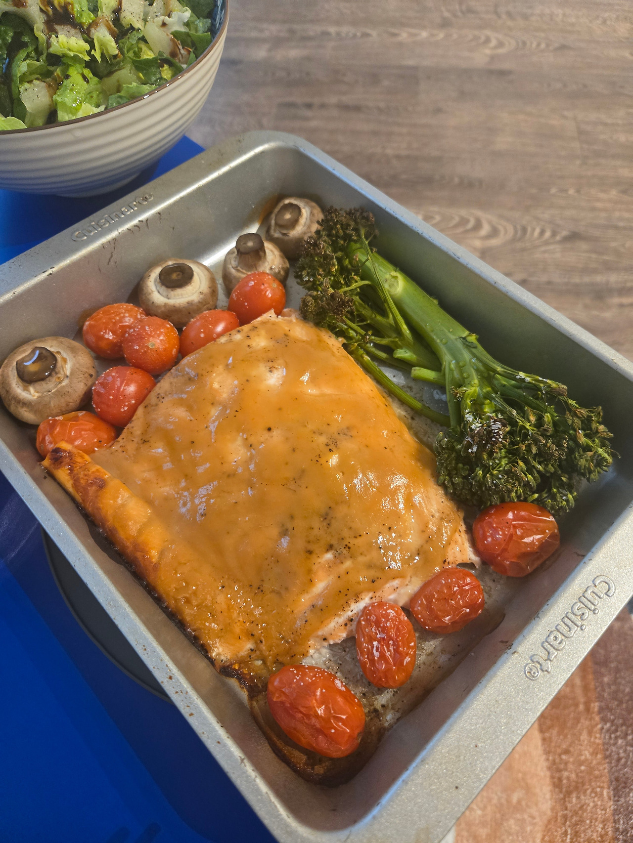 미소페이스트에 꿀, 간장, 올리브유를 섞은 뒤 연어 윗면에 발라 400도로 온도를 맞춘 오븐에서 10분 정도 구워내면 끝입니다.