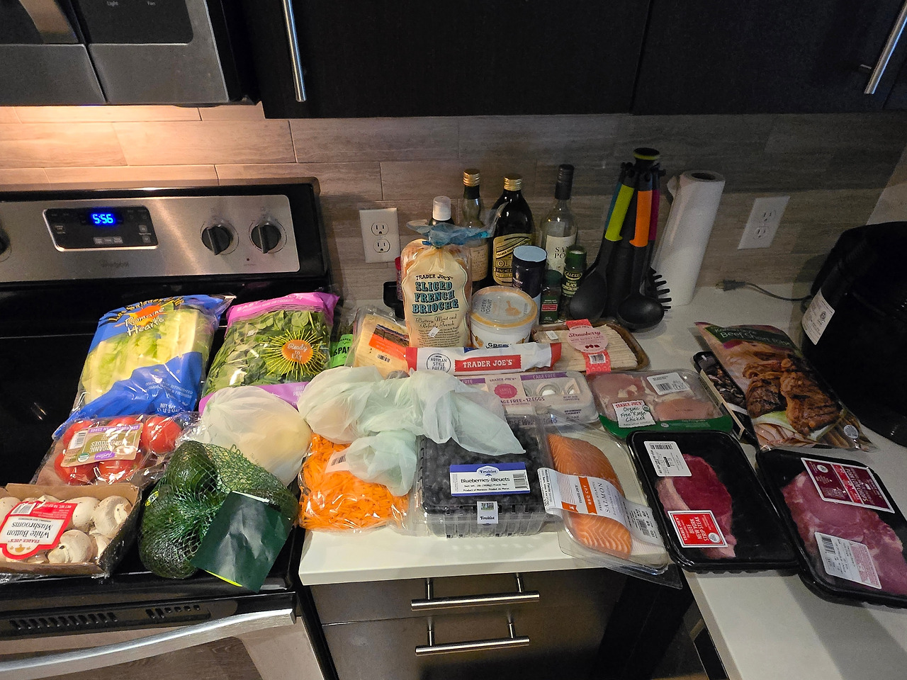 집에 돌아오자 가장 먼저 한 일은 트레이더조에 가서 신선식품을 사서 냉장고에 가득 채우는 일이었습니다. 과일, 채소, 고기를 종류별로 가리지 않고 채워 넣었어요.