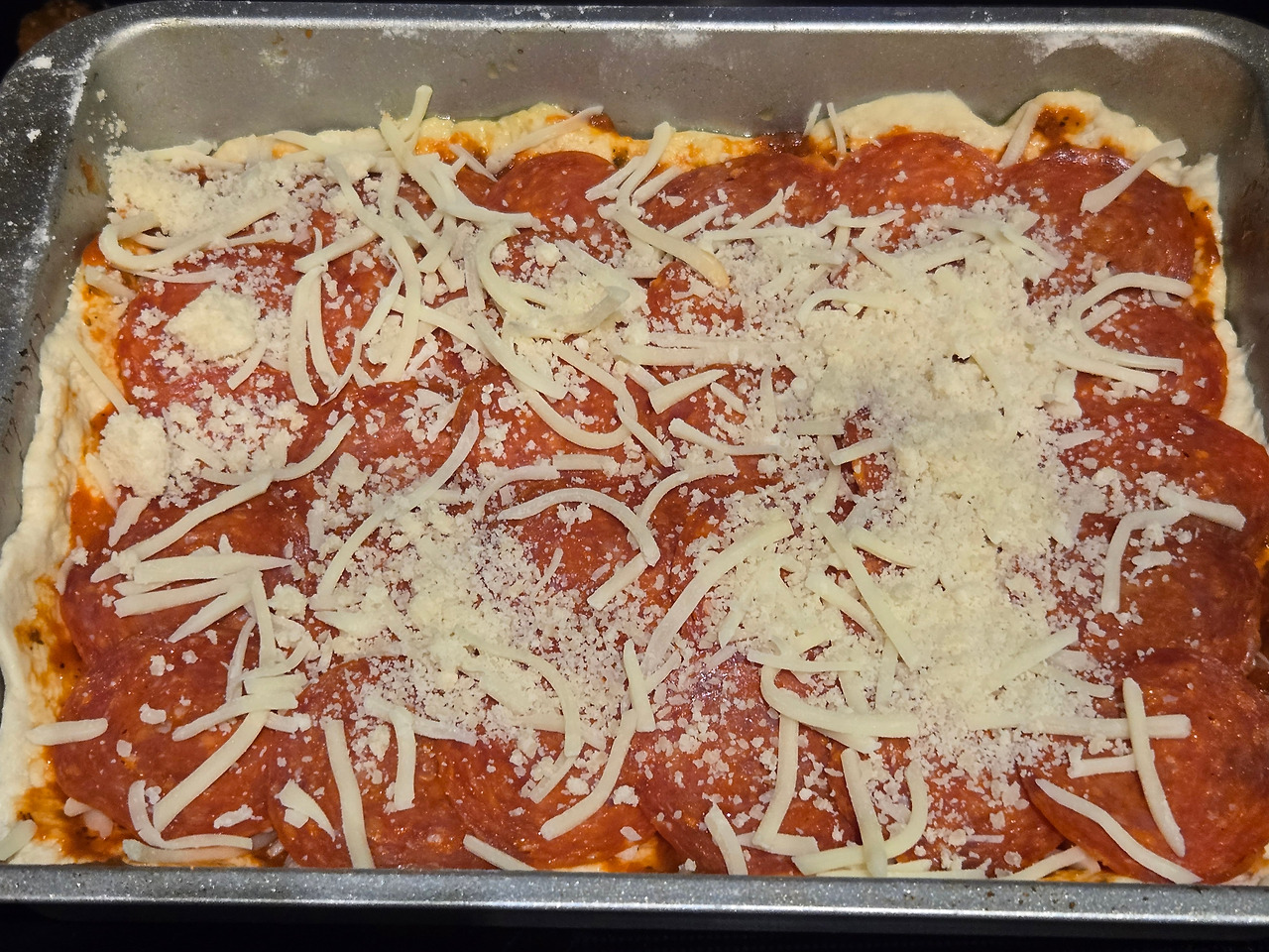 재료 값이 두 배로 드는 반반 피자를 만들다니. 피자를 처음 만드는 초심자 치고 야망이 컸던 것 같네요.