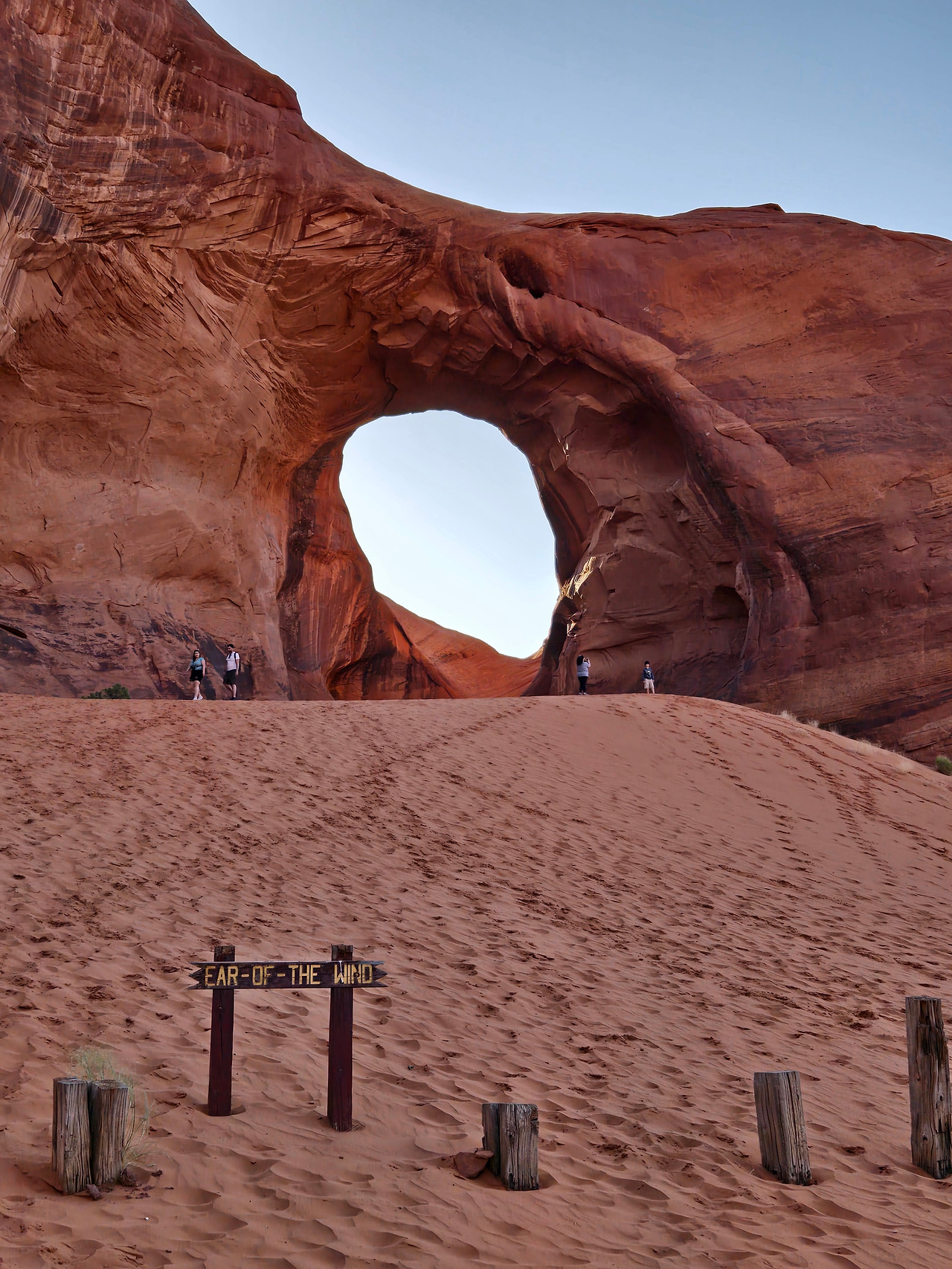너무나 감동적이었던 Ear of wind. 바람의 귀라는 뜻인데, 아치의 구멍 모양이 마치 커다란 귀처럼 생겼다고 해서 붙여진 이름이라고 한다. 바람의 풍화작용만으로 형성된 지형인데, 나바호족 전통에서는 바람을 통해 신들과 조상들의 메시지를 듣는 장소라고 한다.