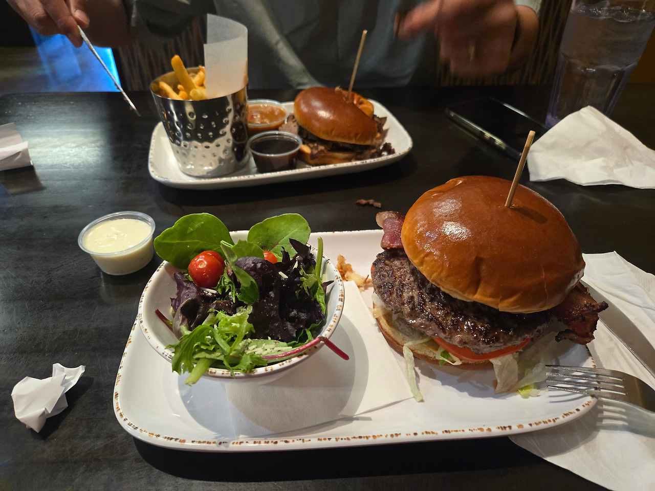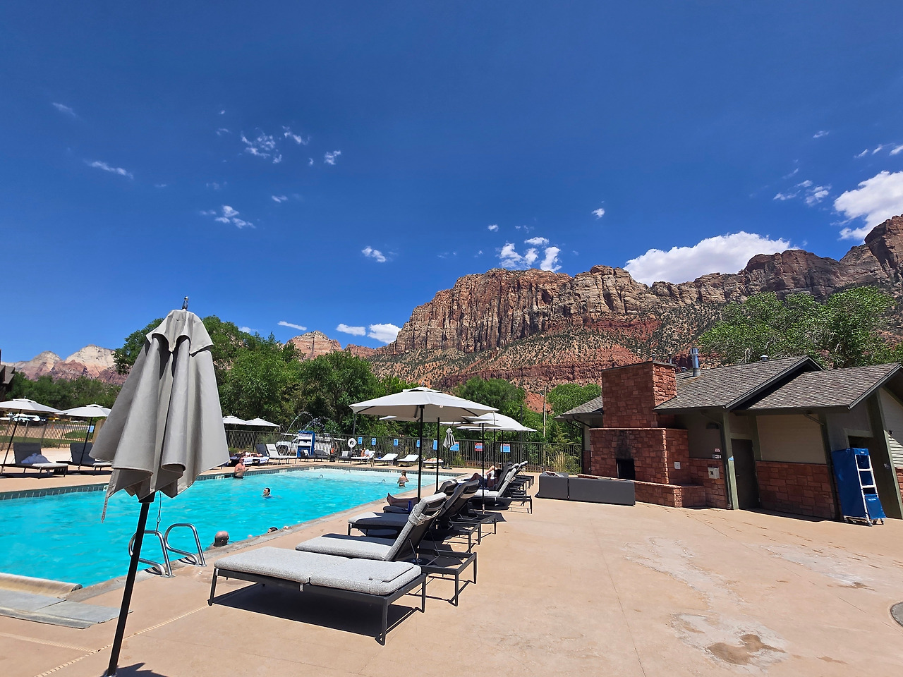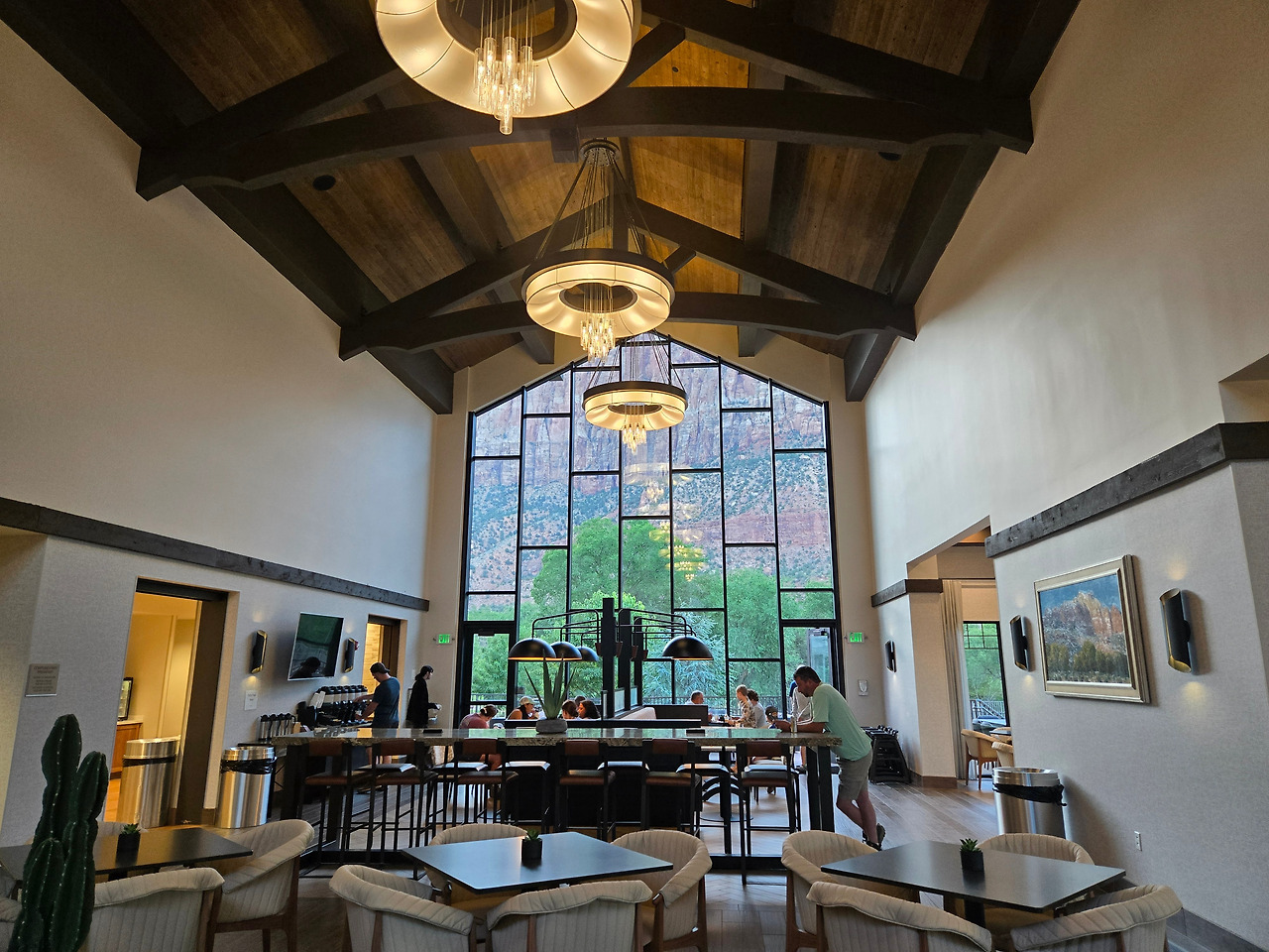 등산과 장거리 운전을 일주일 넘게 반복하다 보니 체력은 고갈된 상태. 숙소에 도착해 얼리 체크인을 하자마자 주변을 구경할 새도 없이 방에 쓰러지듯 누워 잠들었다. 가까스로 일어나 숙소를 돌아보니 예상대로 시설 모두 훌륭했다. 로비와 수영장에서는 자이온 캐년의 풍경을 한눈에 볼 수 있었다. 숙소에서 걸어서 30초 거리에 스포츠 펍이 있어 요깃거리를 찾으러 들어갔다. 우리를 제외하고 손님 대부분이 나이가 지긋하신 백인 커플이었다. 미국 현지에서도 사랑받는 휴양지라는 느낌이 단번에 들었다. 별 기대 없이 시킨 블루치즈 버거는 풍미가 좋았다.