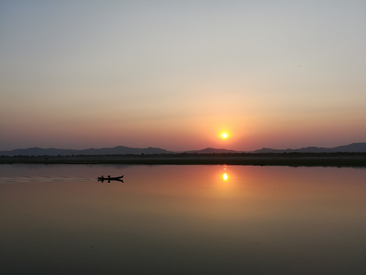 강가에 일몰이라는 색깔을 뿌려놓은 듯 하늘을 그대로 비추고 있었고, 하늘은 더할 나위 없이 붉고 아름다웠다.
