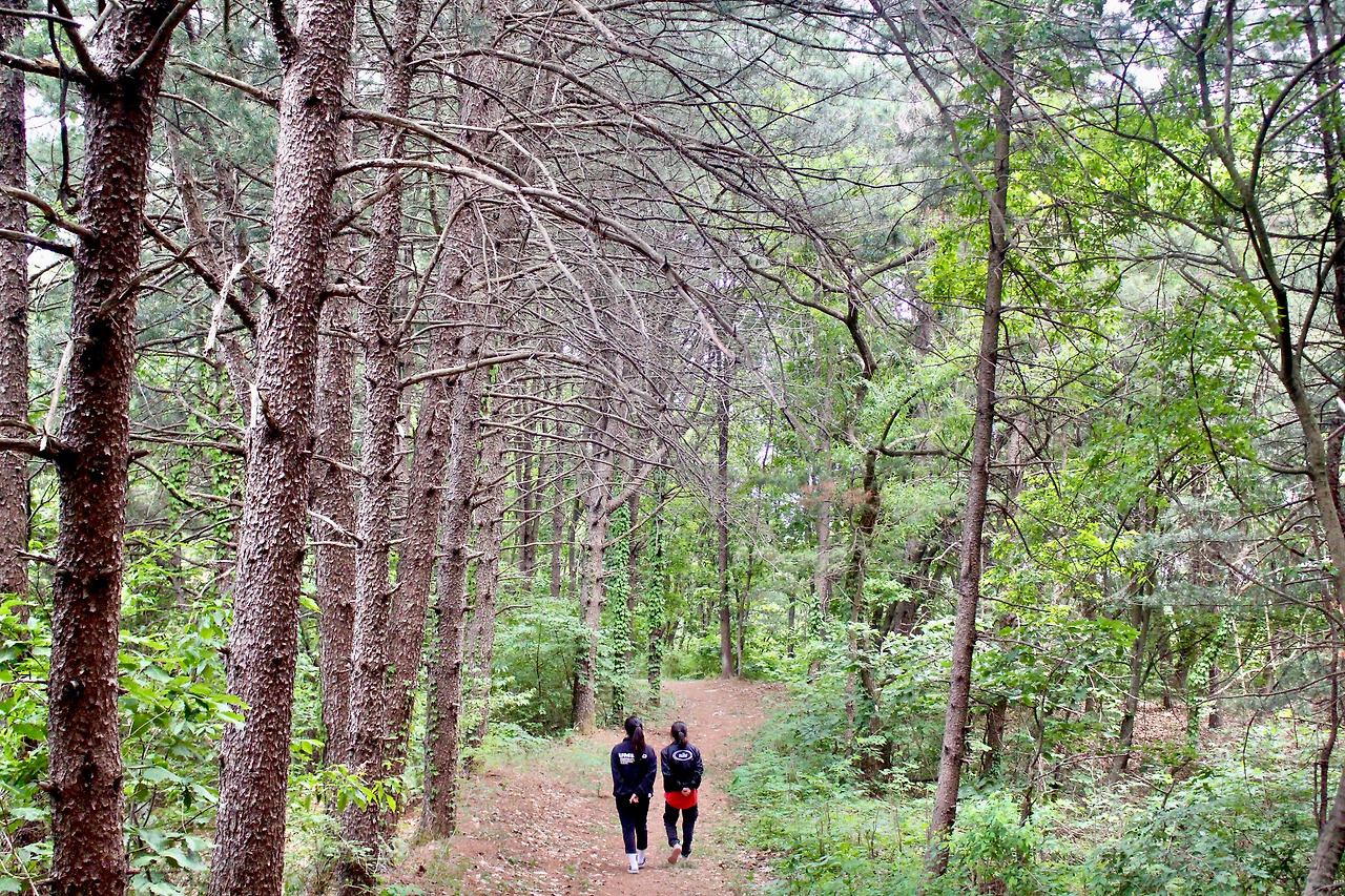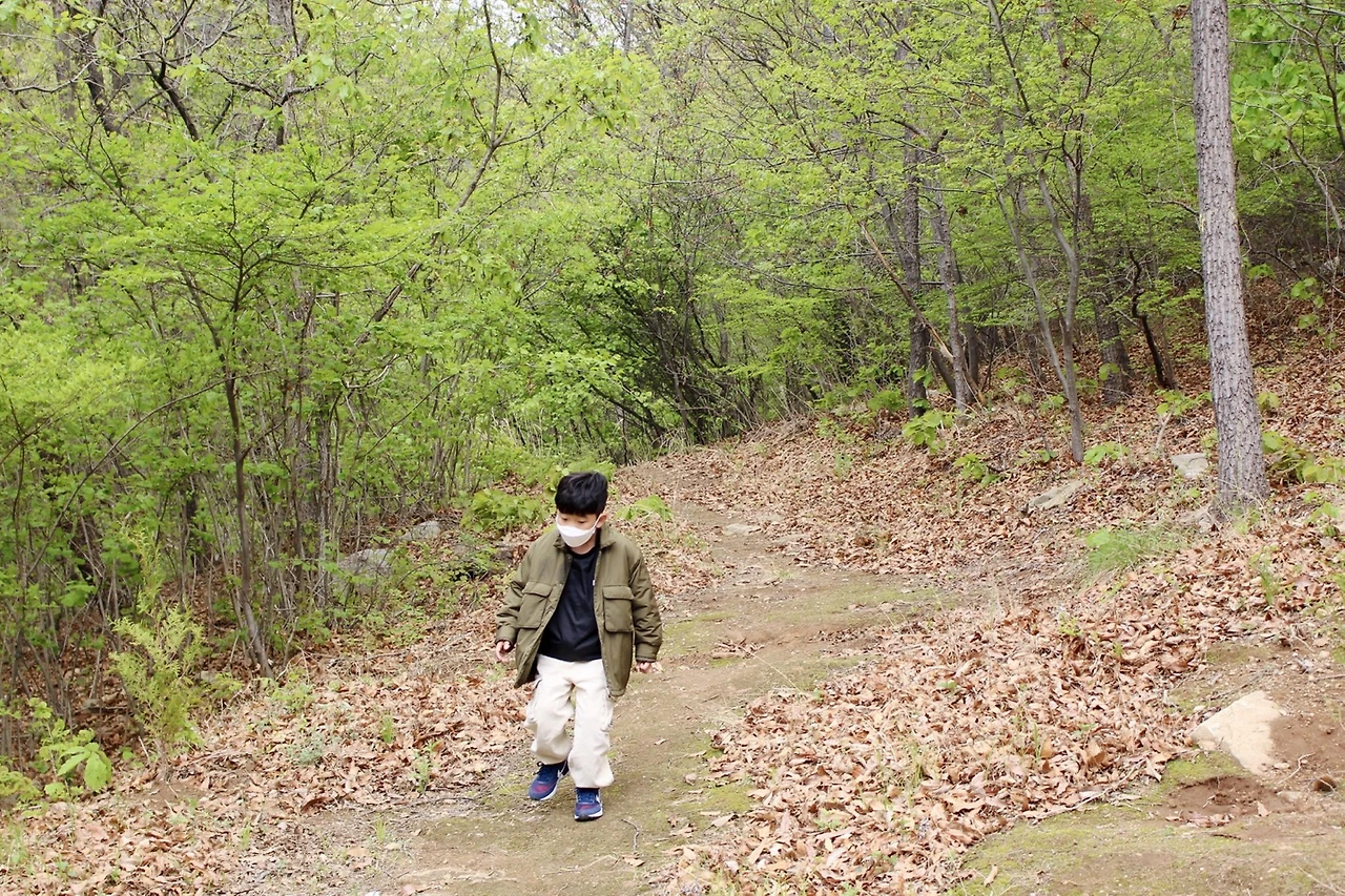최상단 사이트를 넘어 올라가면 산책하기 좋은 숲길이나온다. 2박 캠핑을 하면 이틀차가 늘 여유로운데 셋이서 피톤치드도 충전하고 새소리 들으면서 걷곤 한다. 오르내리며 다른 사이트 구경은 덤.