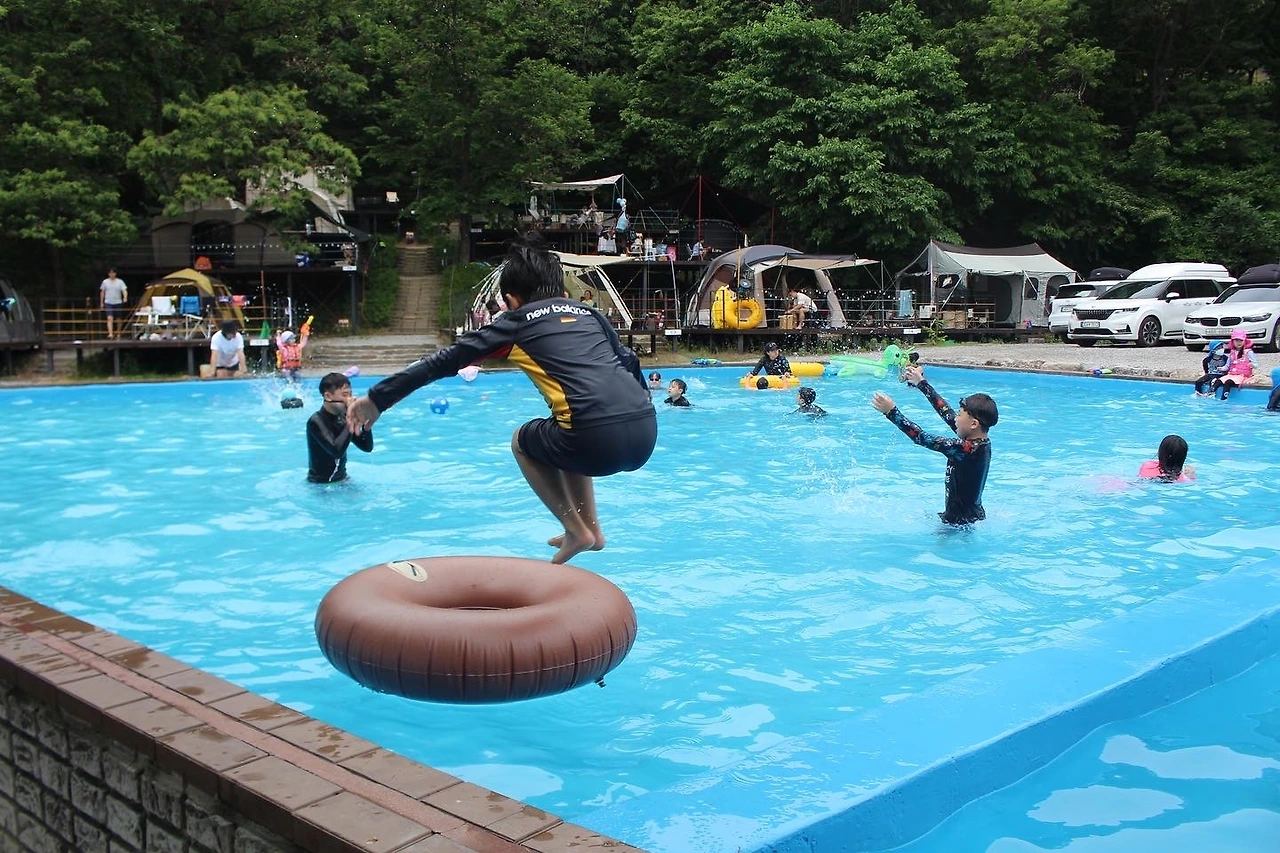 여름이 가까워지면 아들은 어딜 가나 수영장을 찾는다. 늘지 않는 제자리 수영실력에 비해 참 좋아하는데, 가평 파머스힐 캠핑장은 수영장을 갖춘 캠핑장으론 으뜸이었다.