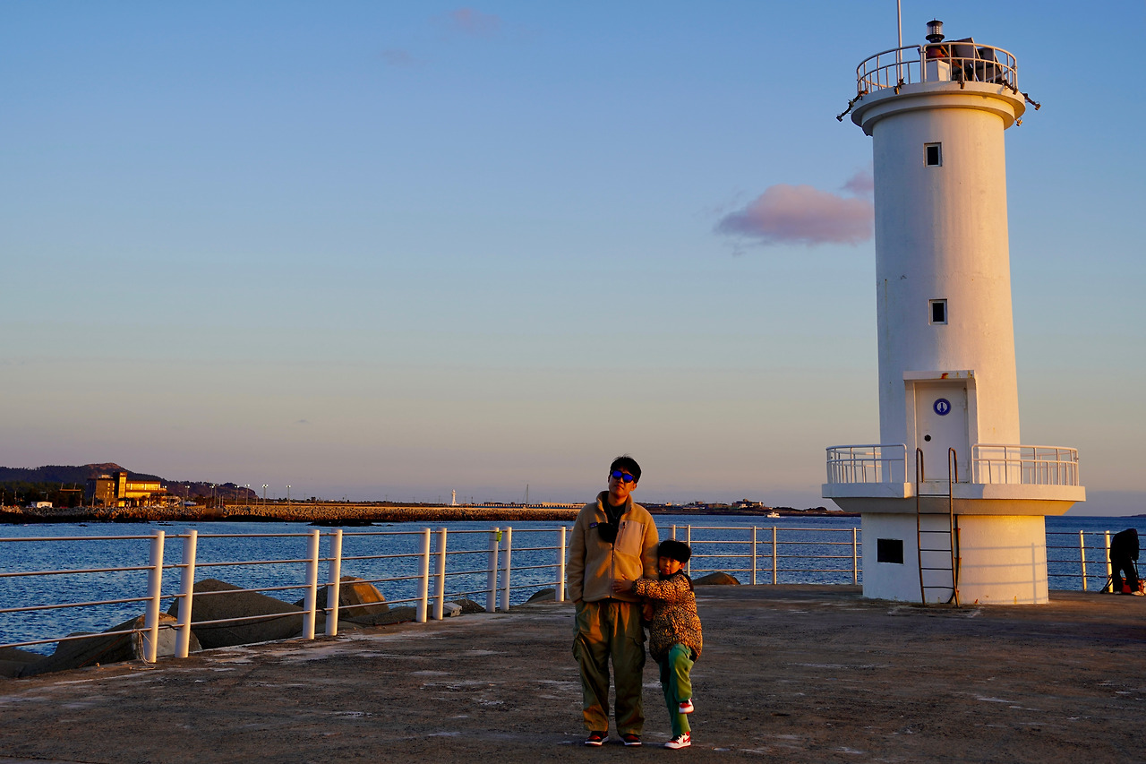 겨울 초저녁길 제법 매서운 바닷바람을 맞으며 방파제 바다 쪽으로 쌓인 거대한 테트라포드 길을 걸었다. 기다란 방파제길 끝 등대까지 걸으니 모슬포항의 일몰쇼가 시작됐다. 드문드문 낚시를 하는 사람들도 카메라를 꺼내기 시작했고, 아들도 자기 핸드폰을 들고 연신 셔터를 눌렀다.