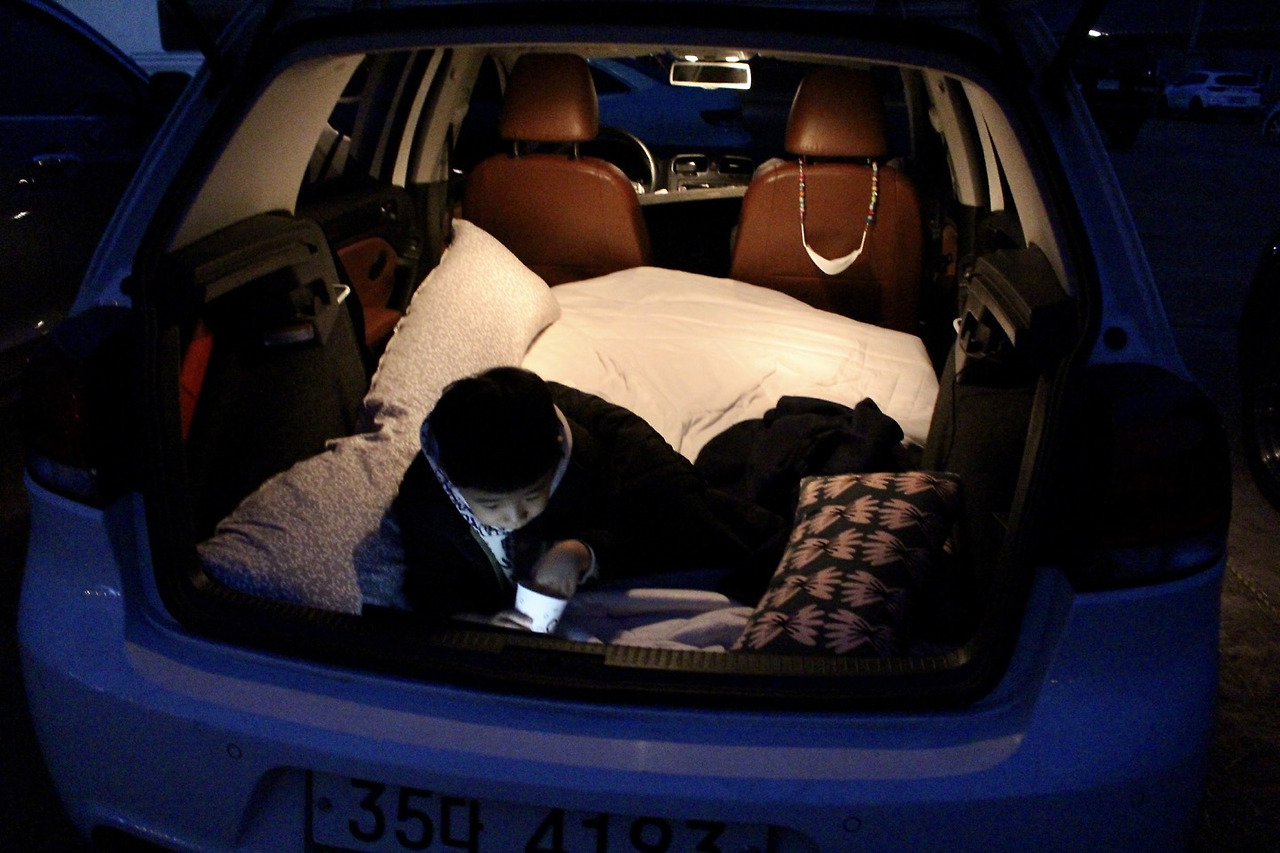 당시 SUV나 기아 레이에 운전석 뒷열부터 트렁크를 잠자리로 만드는 '차박'이 SNS와 매스컴에 자주 등장했는데, 뒤질세라 우리 패밀리카(폭스바겐 골프 해치백) 트렁크를 비우고 뒷열을 접어 나름의 공간감(?)을 손수 증명하고 난 뒤 실패 위험이 적은 캠프닉을 한 번 해보기로 어렵사리 아네스의 동의를 얻어냈다.