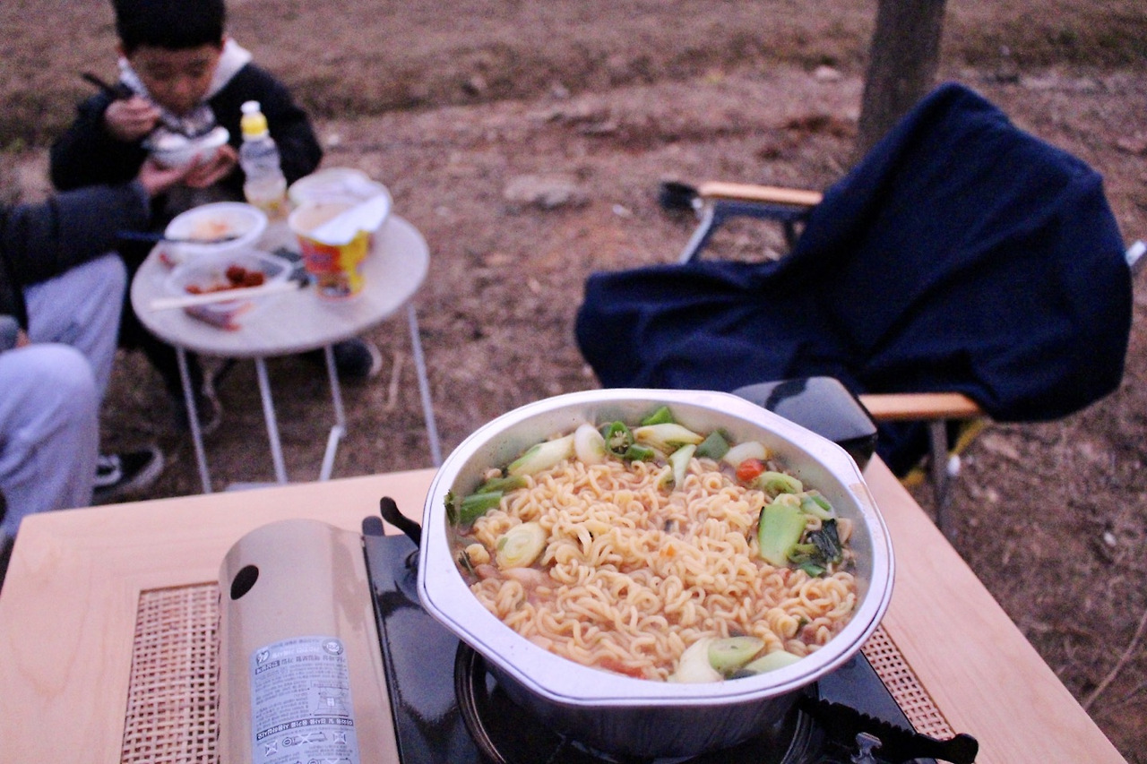 음... 예상했던 느낌은 아닌데 그래도 좋다. 이상하게 좋다. 캠핑장비라 부르기도 민망한 집안 살림으로 챙겨 왔지만 탁 트인 야외에 우리 가족 단독의 공간을 꾸리고 오후 반나절 쉰다는 게 제법 낭만적이었다. 아들은 차에 누워 뒹구는 것도, 평소에 먹기 힘든 라면을 흔쾌히 먹을 수 있다는 것도 마냥 신나는 모양이었다.