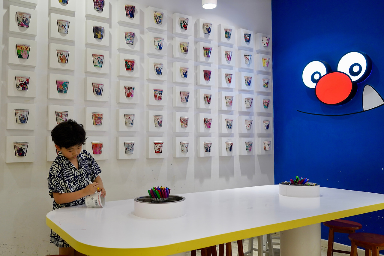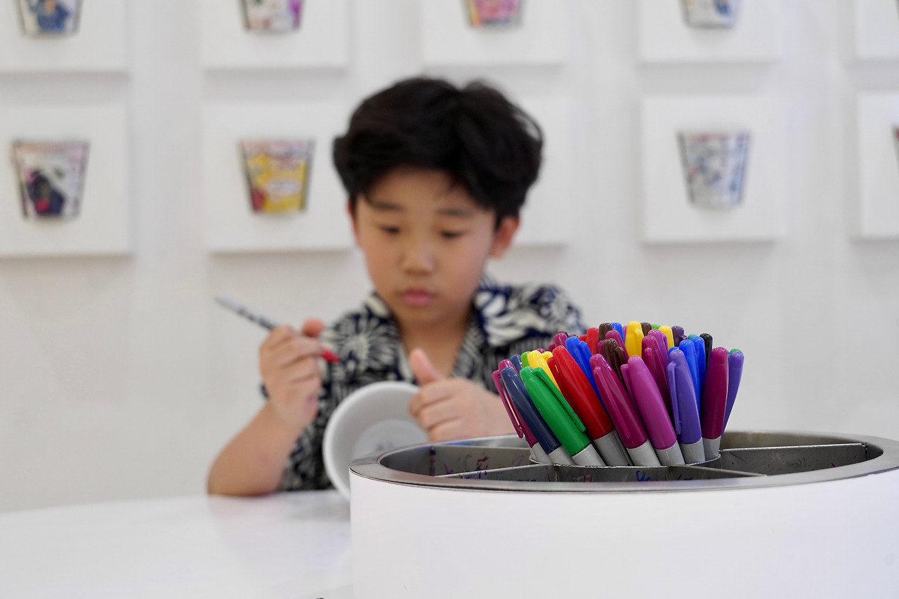 손선풍기와 물이 필요한 날씨, 걸어 다니기 힘들 아들을 위해 마미(MAMEE) 라면 만들기 체험을 하러 갔다. 15링깃을 내면 밑그림이 그려진 컵라면 케이스를 주고, 컬러를 칠해서 아이가 직접 고른 맛과 재료로 실제 컵라면을 예쁜 박스에 담아주는 체험이다.