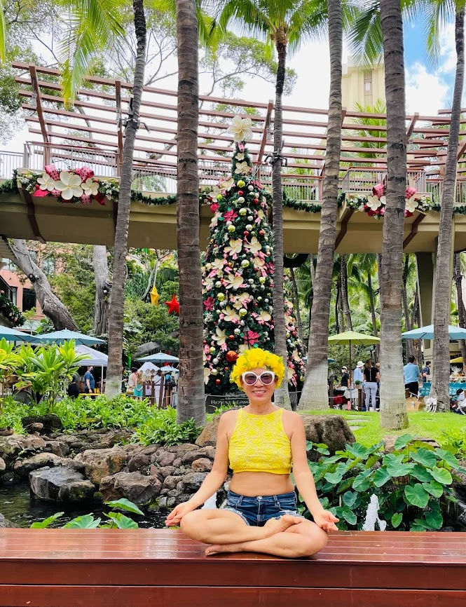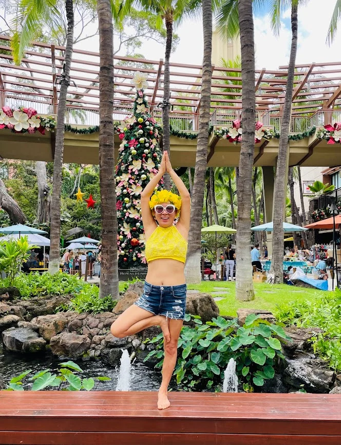 아 얼마만에 해 보는 요가인가! 파드마사나로 바라보는 와이키키 풍경! 좋다!