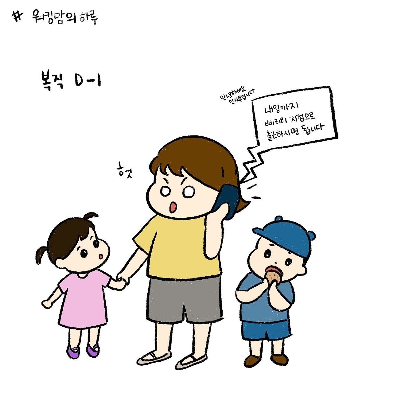 오랜만에 올리는 만화입니다! 복직한지 한달 남짓 되었어요. 다행히 생각보다는? 워킹맘의 일상에 잘 적응 하고 있습니다!