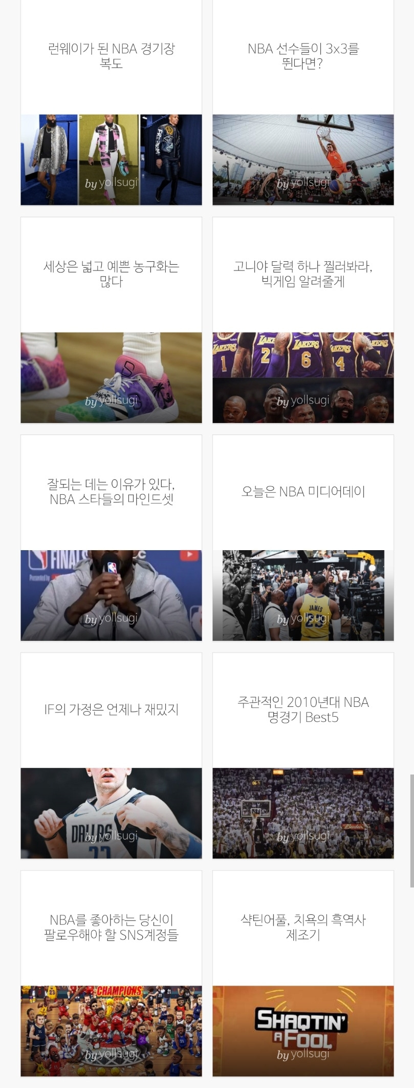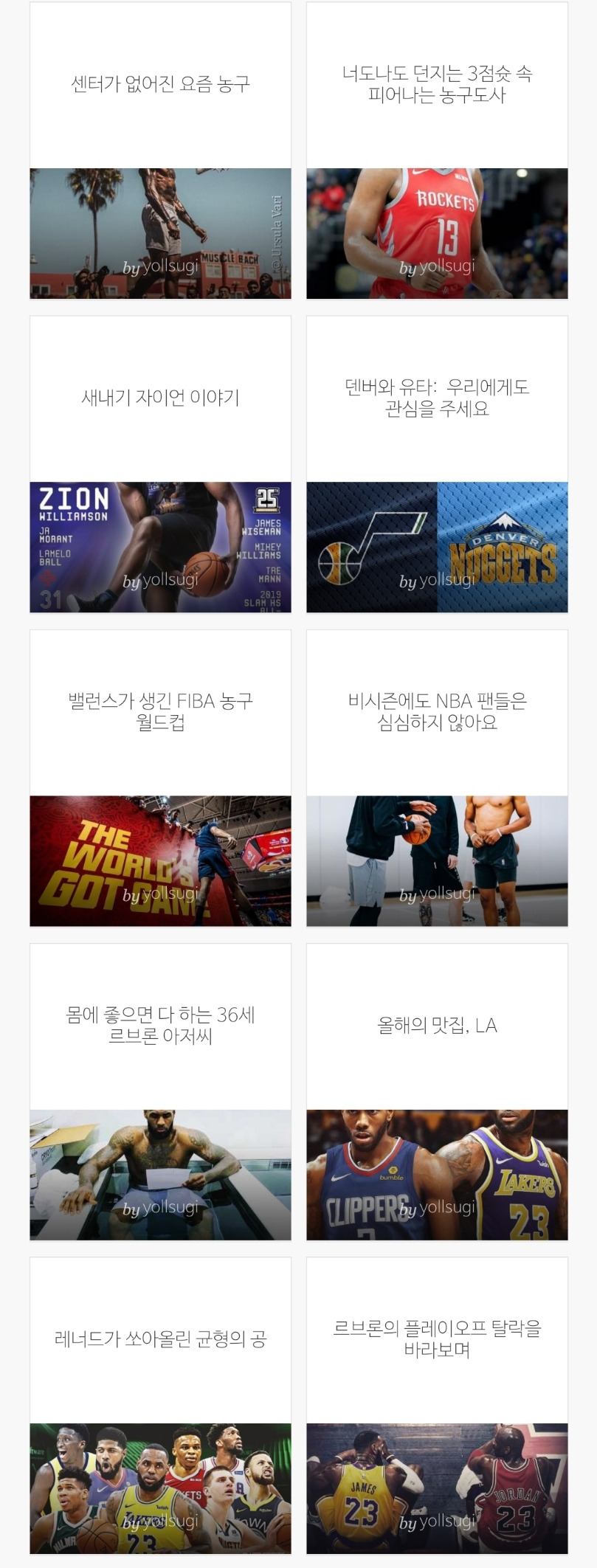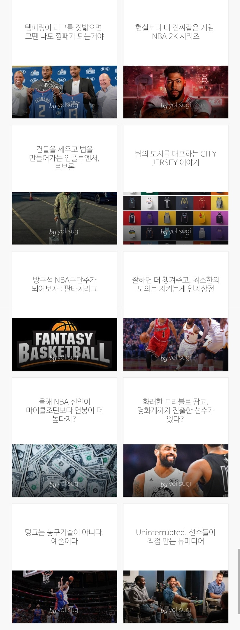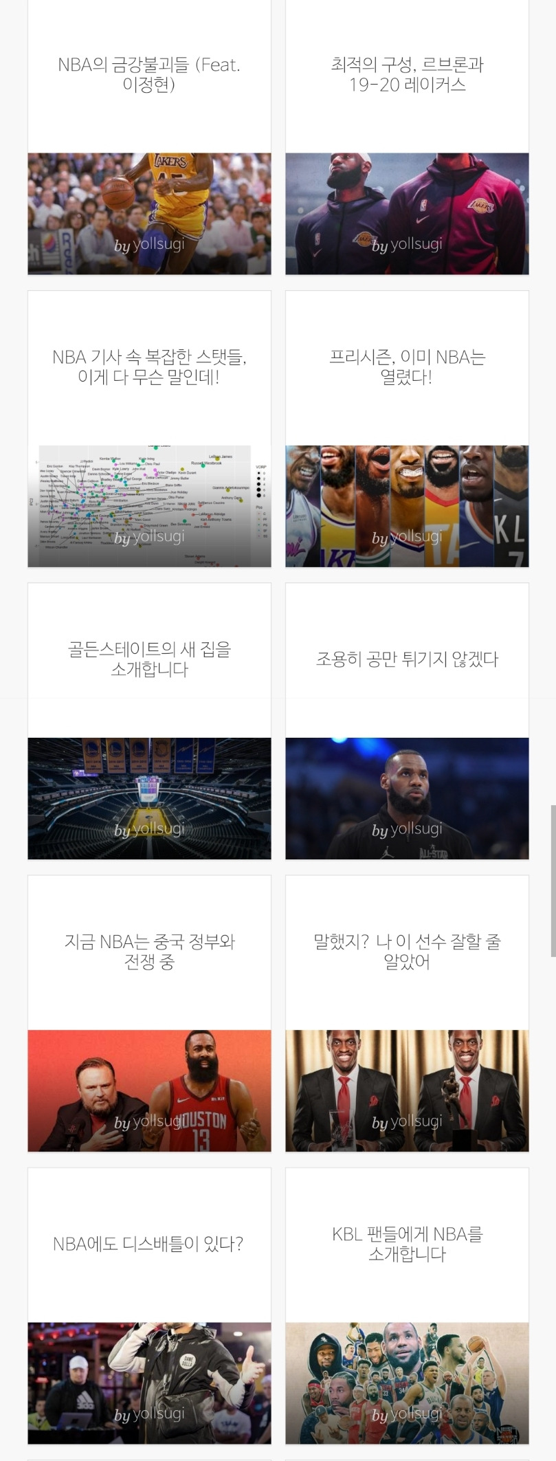 처음에는 NBA 개막을 기다리는 설레는 마음만을 갖고 시작했다. 한 20여개 정도의 주제를 생각해보긴 했으나 그 중 반은 아예 쓰지 않은 것을 보면, 무작정 시작했다는 표현이 정확하겠다. 다만 이 프로젝트를 시작할 때 스스로 명확하게 정한 것은 있었다.