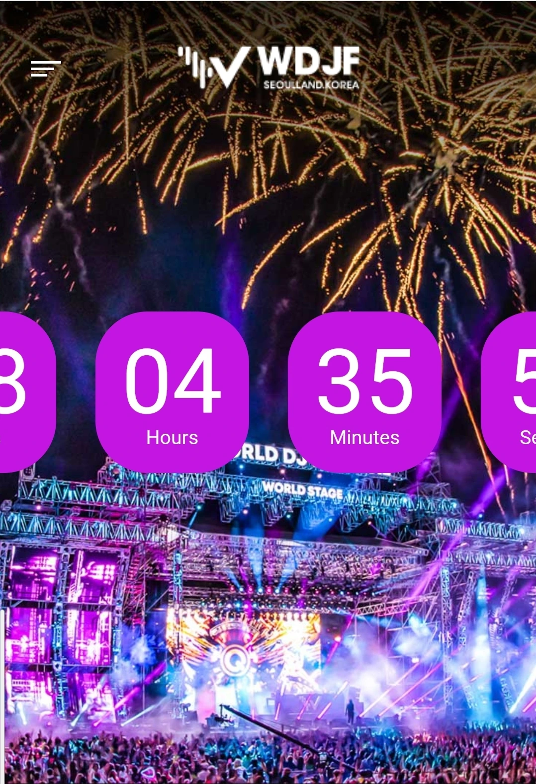 카운트다운 화면. 좋은데 아쉽다.INFO에 들어가면 카운트다운이 나온다. 흥미롭다. 페스티벌을 기다리며 느끼는 설렘이 증폭되기도 하고.