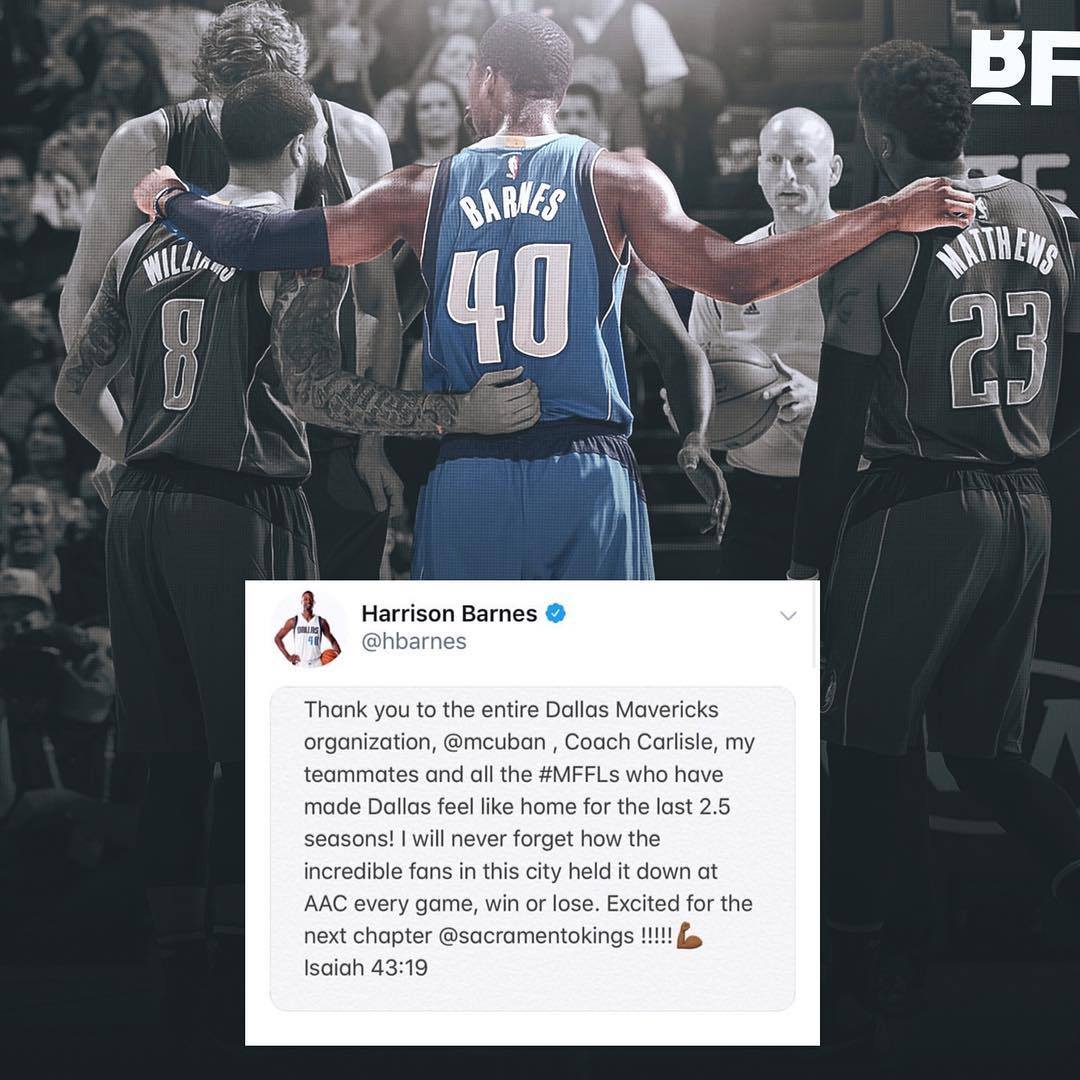 이에 해리슨 반즈는 댈러스 프랜차이즈에 감사를 표하는 메시지를 남겼고, 르브론은 이 문제를 공론화시키며 팀과 선수 간의 갑을로 인한 형평성 문제에 의문을 제시했다.