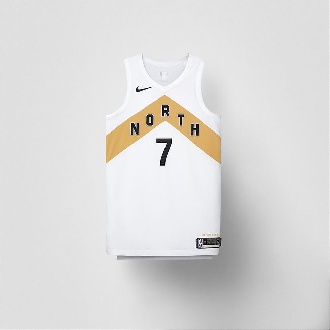 골든스테이트는 샌프란시스코의 대표명소인 베이 브릿지와 미국 최대 차이나타운이 샌프란시스코에 있음을 나타낸 져지 디자인이고 토론토의 North는 NBA 유일 캐나다 팀임을 표현함과 동시에 'WE THE NORTH'라는 팀 슬로건을 더욱 가시적으로 디자인화 시킨 것이라 볼 수 있다.