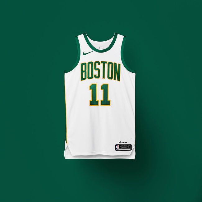 보스턴은 구 보스턴 왕조 시절, 밥쿠지와 빌 러셀의 1950년~1960년대, 그리고 셀틱스의 상징 래리 버드의 1980년대 시절 선수들이 착용하던 웜업져지 디자인에서 모티브를 따 왔다. 흰색과 초록색의 깔끔한 배합에 옆구리 부분 금색 포인트를 넣은 것이 가장 구매욕구를 자극하는 져지 디자인이었다.
