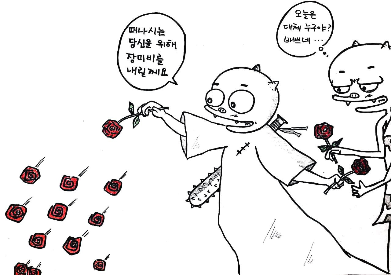 하늘에서 두 사람에게 끝없이 쏟아지는 장미꽃비를 내려 줄테니 그저 내리는 장미꽃처럼 아름답게 이별을 맞이해주길..