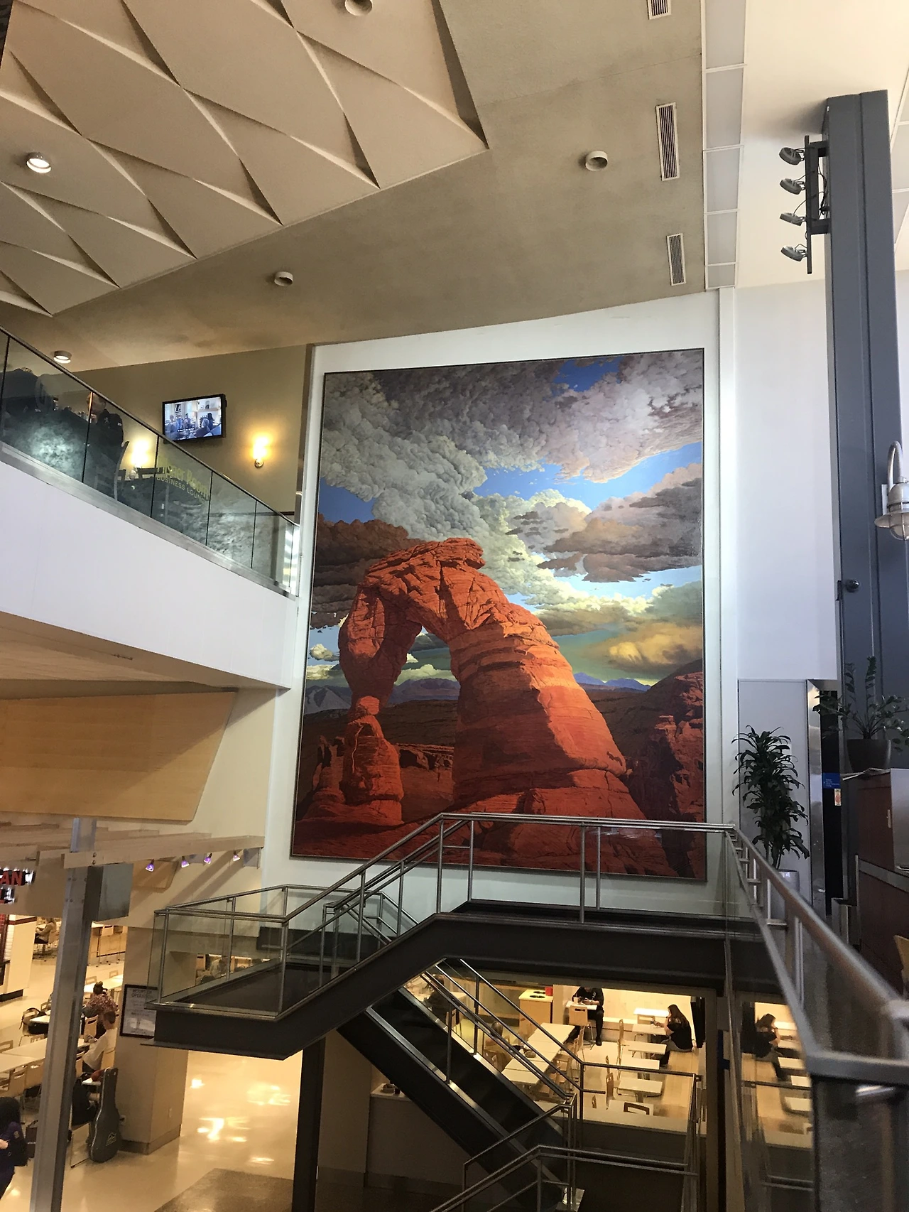 솔렉시티공항에 내려 보이는 뷰와 크게 걸려 있는 델리키트 아치 그림. 공항은 늘 설레는 곳이다. 차를 렌트하고 유타 시내를 본 뒤 그다음 날 모압으로 향한다.