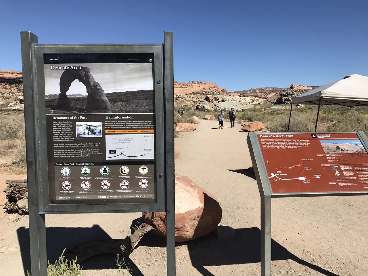 델리키트 아치는 트레일로 입구부터 1시간 30분 이상 올라가야 한다. 바위와 풀을 헤쳐서 가진 않고 비교적 평탄한 지형이었는데도 불구하고, 한낮 땡볕과 그 땡볕을 피할 수 없는 나무가 없어 힘들다 느껴진다. 그 결과 얼굴과 팔이 그을리는 아웃풋이 발생한다. 그럴지라도 꼭 가야 한다. 유타의 차 라이센스 플레이트 모델인 델리키트 아치다.