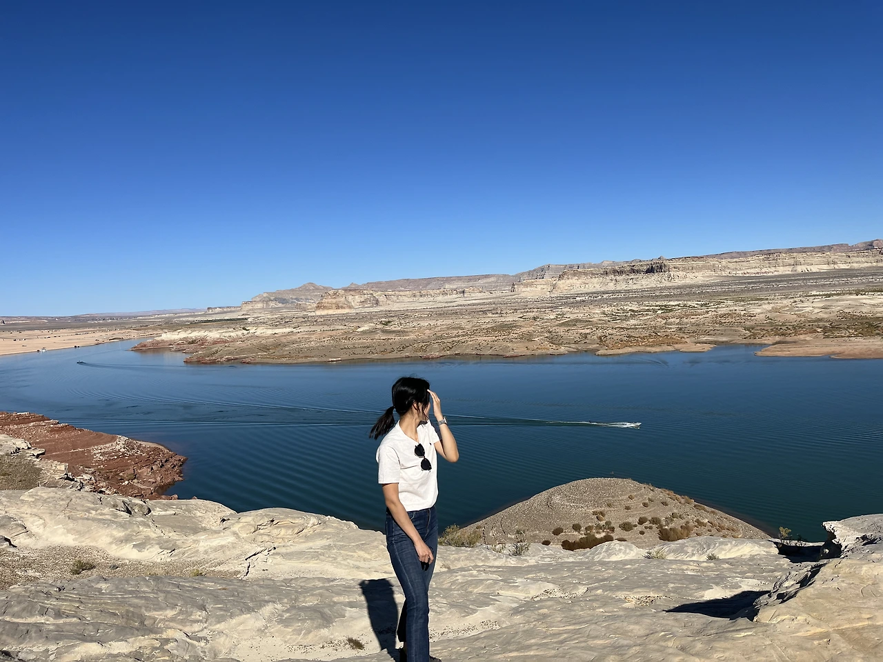 북쪽으로 더 올라가 Wahweap viewpoint에 도착한다. 2018년도 애리조나 페이지를 스치듯 지나갔던 나를 반성하는 시간이었다. 고요하며 맑고 조용한(?) 활기찬 분위기가 느껴졌던 곳이다. 중간중간 보트를 타는 사람들이 꽤 있는데 정말 국립휴양지 라는 타이틀에 걸맞은 여유로움이 있다.
