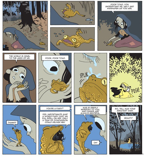 중세 프랑스의 어느 마을, 모뤼는 모두로부터 천덕꾸러기 취급을 받는다. 이유는 단 하나, 너무 못생겼기 때문이다. 모뤼는 하도 생선 비늘을 벗겨 몸에 비린내가 배어버릴 정도로 온갖 궂은일을 도맡으며 살아간다. 그러던 중, 예상치 못한 일이 생긴다. 흉측한 두꺼비에게서 자신의 모습을 보고 울음을 터뜨렸는데, 그 두꺼비가 바로 저주에 걸린 요정이었던 것이다. 모뤼의 눈물 덕분에 저주에서 풀려난 요정은 모뤼에게 ‘누구에게든 가장 아름다워 보이는’ 마법을 걸고, 아름답다는 뜻의 보테로 이름을 바꾼 모뤼는 왕자님을 만나 오래오래 행복하게 살았다……면 분명 뻔한 이야기가 되었겠지만, 이 작품은 그렇지 않다.