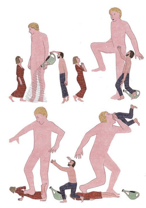 거침없는 상상력은 주저하지 않고 금기시되는 주제까지 파고들어간다. 그 중 한 작품에서는 속이 훤히 비치는 치마를 입은 여자가 등장한다. 치마는 고래 뼈로 만든 코르셋 같기도 하고, 새를 가둬두기 위한 새장 같기도 하다. 지나가던 남자는 망설임 없이 몸을 웅크리고 치마 속으로 자진해서 기어 들어간다. 창살이 견고해 한 번 들어가면 다시는 빠져나올 수 없다는 걸 알면서도. 이런 상상력은 두 번째 그림책 <어떤 장난>에서 좀 더 노골적으로 드러난다. 남녀의 관계를 집중적으로 다룬 이 책은 화들짝 놀랄 만큼 도발적이고 다양한 비유가 인상적이다. 그러나 이런 에로틱한 표현마저도 파욜 특유의 유머러스한 시선 덕분에 유쾌하게 처리된다. 앞으로 파욜의 상상력이 과연 어디까지 뻗어나갈지 저절로 기대되는 이유다.