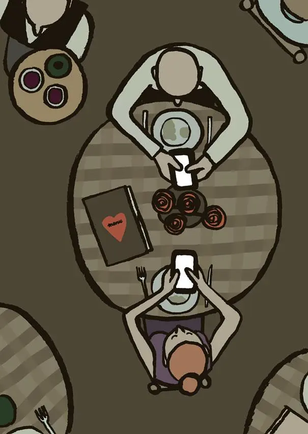 온갖 종류의 조리식품으로 이루어진 몸뚱이는 정육점의 고기와 다를 바 없고, 고급 레스토랑을 찾은 연인은 서로의 눈이 아닌 각자의 핸드폰에 푹 빠져 기념일을 보낸다. 위트 섞인 그림 너머로 익숙한 현실이 엿보일 때마다 씁쓸하면서도, 구구절절 늘어놓는 설명보다 함축적인 그림 한 장이 더 강렬하게 다가온다는 것을 새삼 깨닫게 된다. 앞으로 이 세상의 방향키를 어느 쪽으로 돌려야 할지 생각해보게 만드니 말이다.