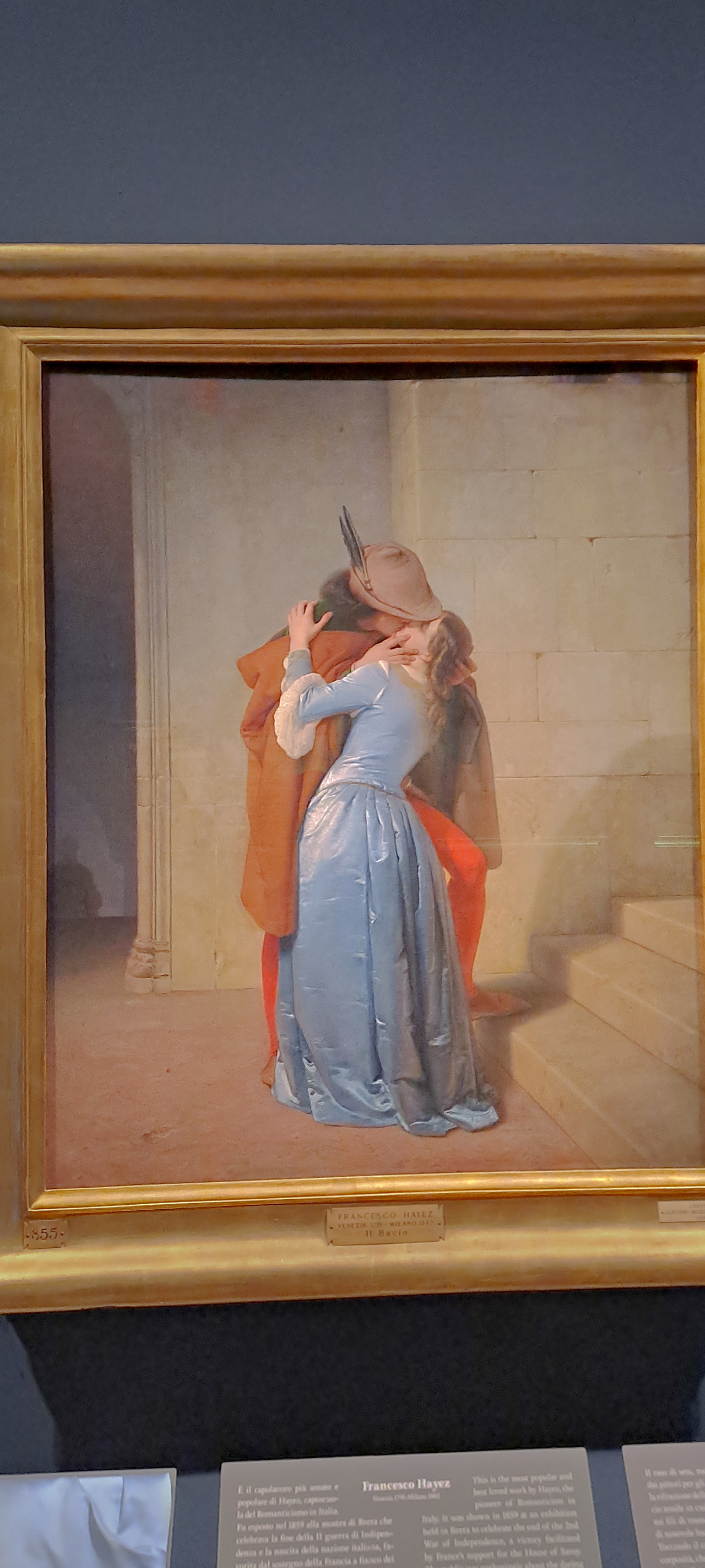 Francesco Hayez, Il Bacio Francesco Hayez(Venezia, 1791 - Milano, 1882)Il bacio1859Olio su telaDono Alfonso Maria Visconti, 1886 Due giovani, stretti in un abbraccio, si baciano con passione. Lei appoggia la mano sulla spalla…