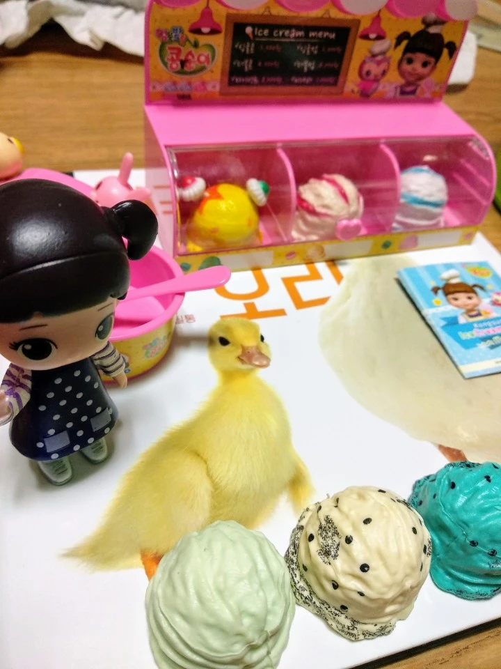퇴근 후, 허전한 마음을 채워 주는 딸과 아이스크림 놀이를 했다. 나는 손님이다. 갈색 사자 머리 작은 숙녀는 내게 말한다.
