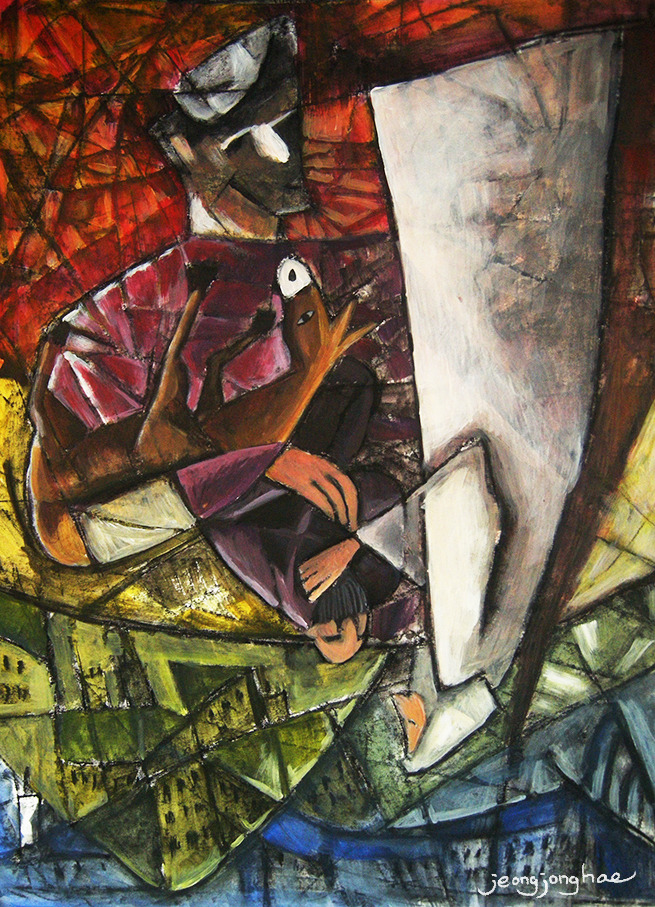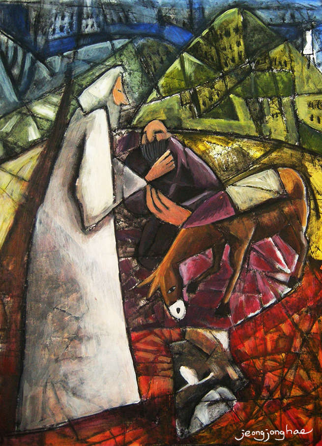 <당나귀와 마부와 선지자 - 거꾸로 본 장면 / 종이에 아크릴 / 2015년>