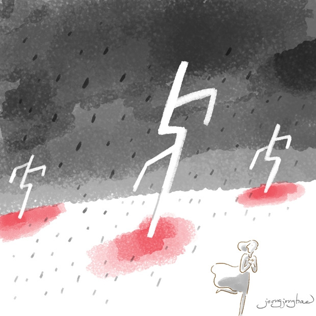 정신없이 가슴으로 쏟아졌던 검은 비와 번개와