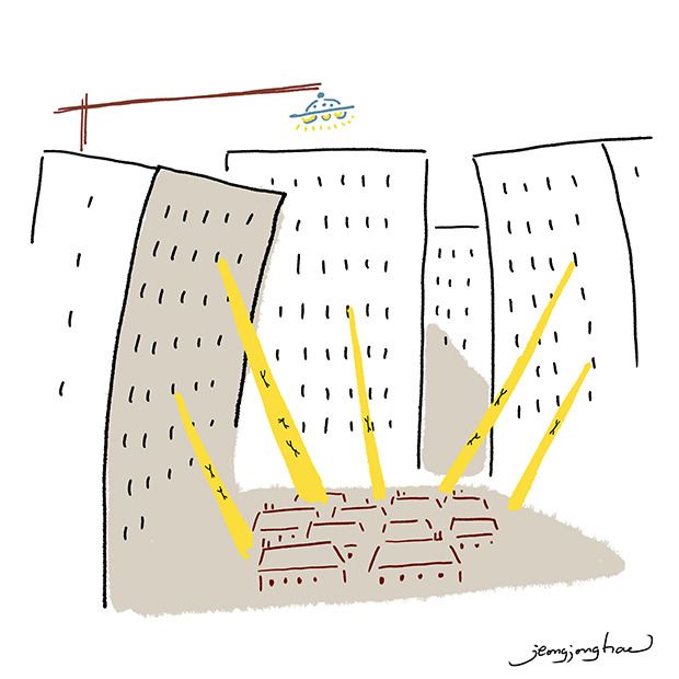 그러나 요즘은 닭장모양의 건조한 괴물들이 시야를 막고 서있습니다.