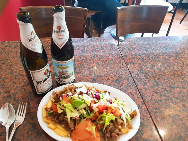 두 번째 음식은 독일 케밥이다. 독일 음식은 아니지만 숙소 바로 앞에 저렴하게 케밥과 샌드위치 등을 맥주와 함께 파는 음식점을 찾았다. 가격은 대부분 만원 이하. 독일에서 이보다 싼 음식점을 못 찾아서 한 5일 중 약 3일을 가서 먹었다. 맥주는 1.5유로(2000원) 한국은 4000원인데... 거의 물이랑 가격이 비슷했다. 대형 마트보다는 비싸지만 너무 저렴해서 발길을 끊을 수 없었다.