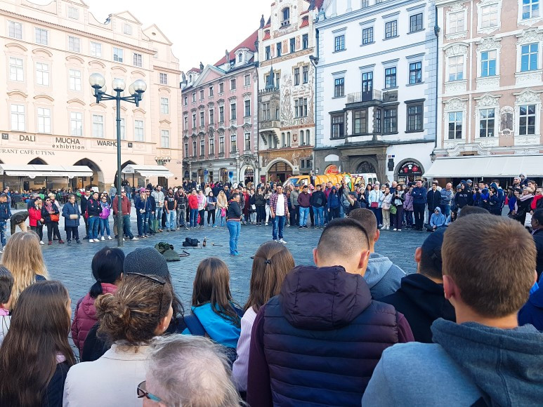 일단 가자마자 이걸 먹고 다른 곳으로 움직였다. 이 곳은 구시가지 광장으로 평범한 동상들과 서로 즐기며 공연하는 사람들을 볼 수 있었다. 꽤 재밌었다.