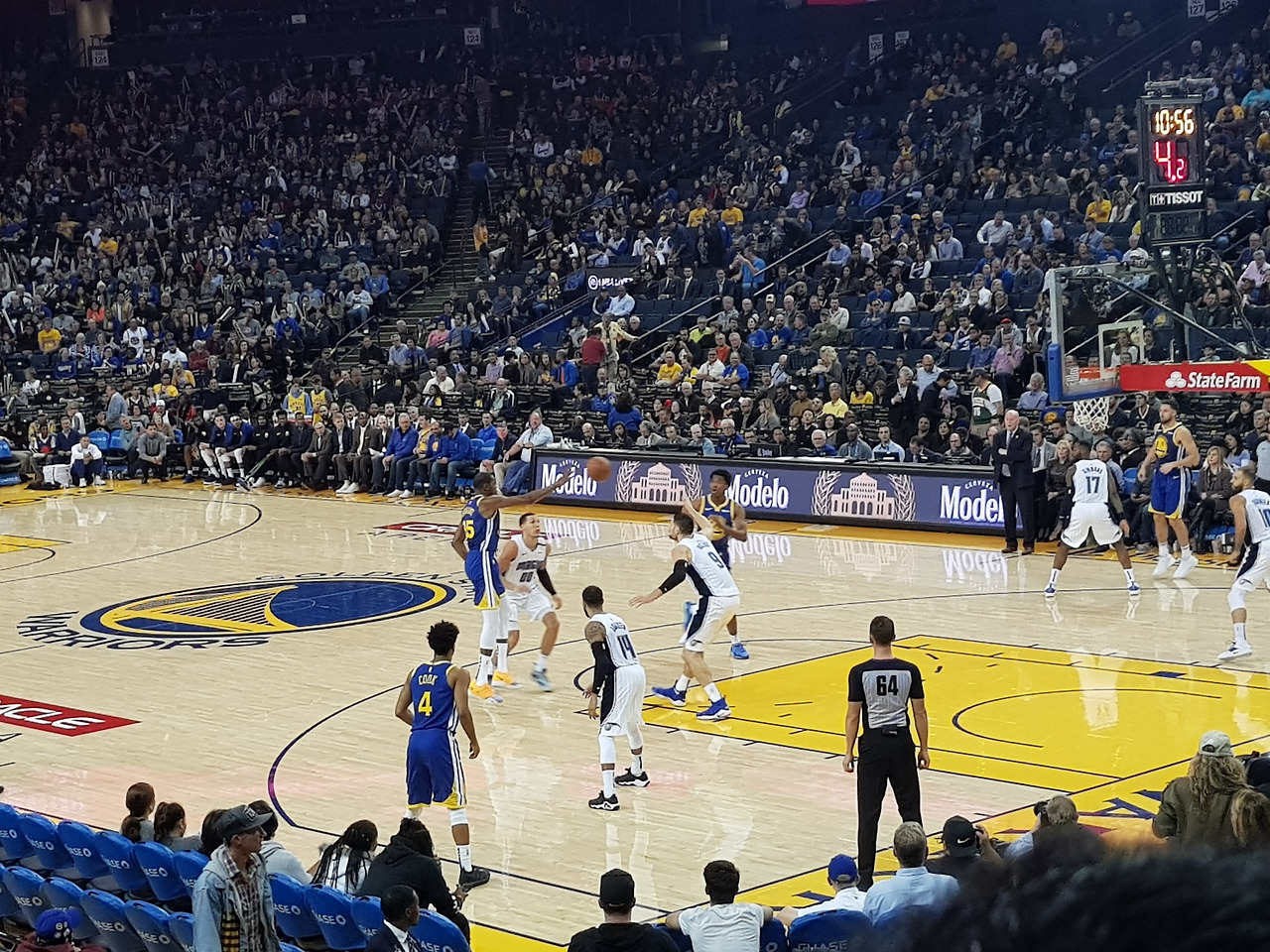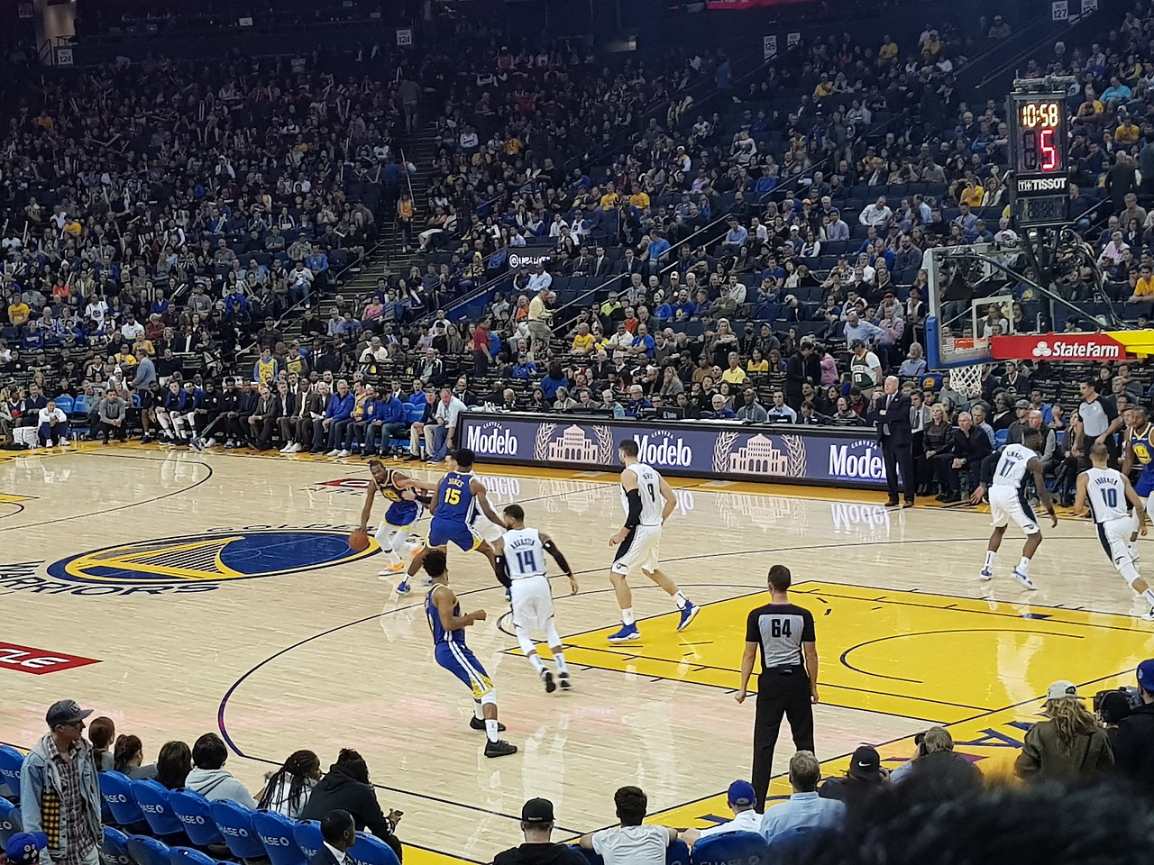 샌프란시스코에 도착하니 벌써 7시 반이 되어서 부랴부랴 뛰어갔다. 도착하니 8시 결국 1 쿼터는 못 본채 커다란 배낭을 메고 오라클 아레나에 도착했다.