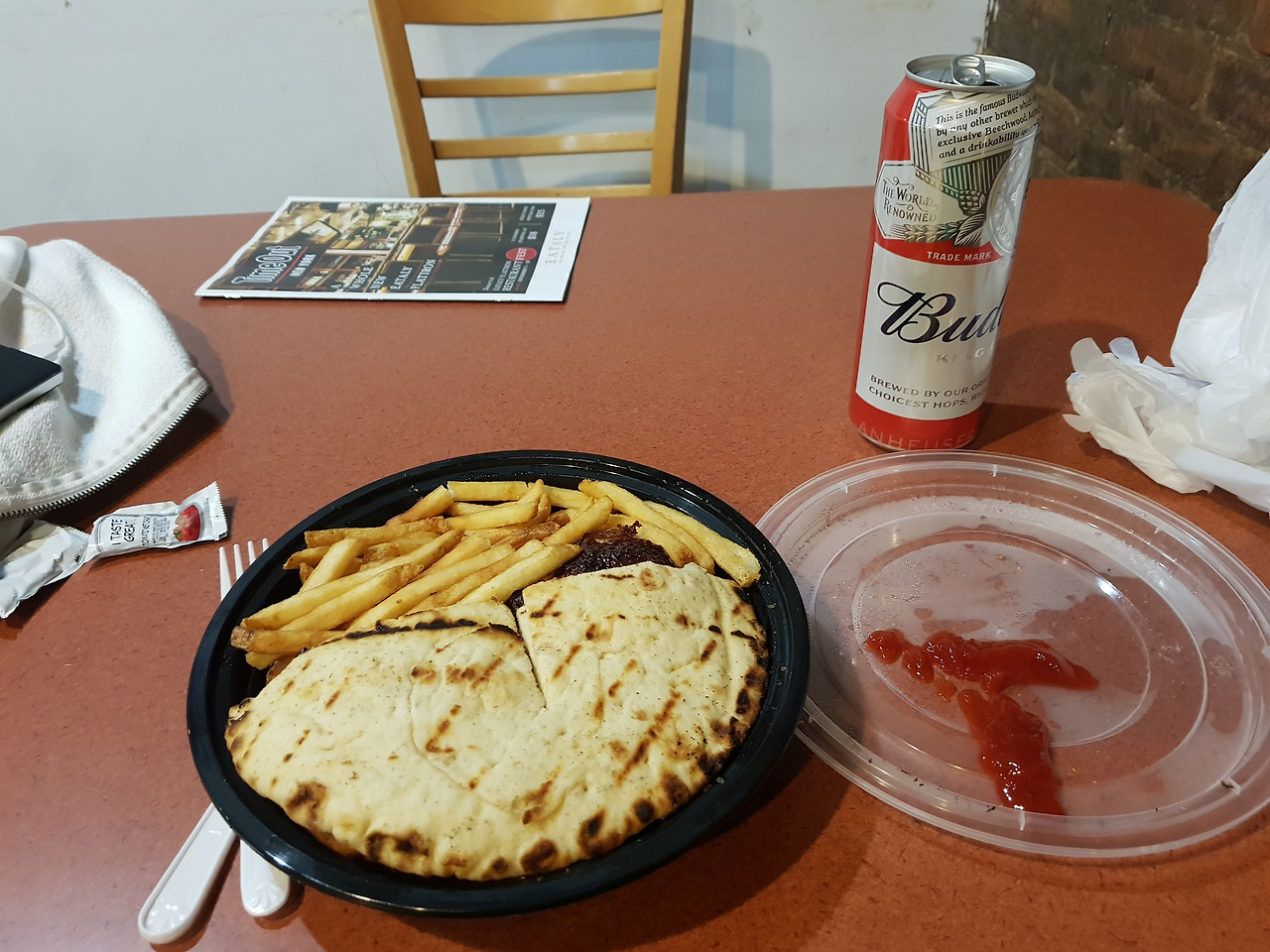 메뉴는 여러 할랄로 제조한 고기를 곁들였으며 가격은 약 세트로 10달러 미만이었다. 그럼에도 불구하고 양도 푸짐하고 무엇보다 내가 좋아하는 할라피뇨가 많이 들어있어서 내 입맛에 딱 맞았다.