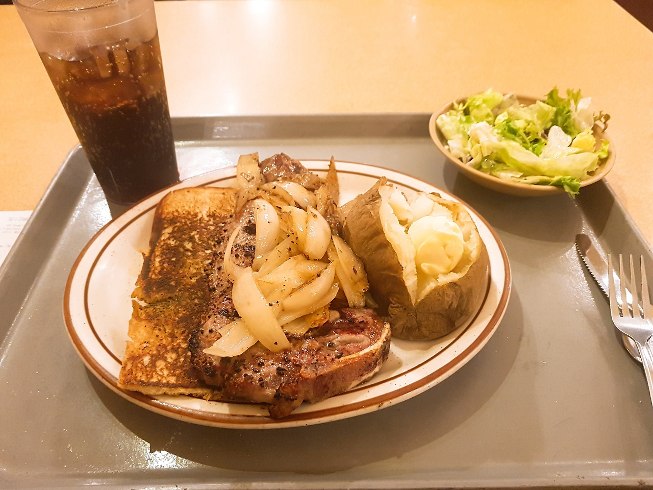 미국까지 왔는데 스테이크 한 번은 먹어야 하지 않겠나 라는 생각으로 고르고 골라 이 스테이크 하우스에 도착했다. 이때까지 미국에서 먹은 음식이 다 빵, 고기. 야채였으니 좀 돈 좀 써보자!라는 생각에 기분 좋게 음식을 시켰다.