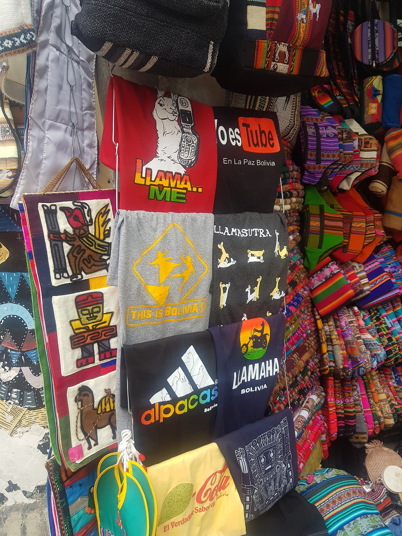마녀 시장 분위기는 좀 으스스했다. 가게 천장에는 새끼 알파카들이 말려서 전시되어 있고 관광객도 몇몇 없어서 살짝 겁먹었지만 페루에서는 못 본 특이한 의류들이 눈에 띄었다.