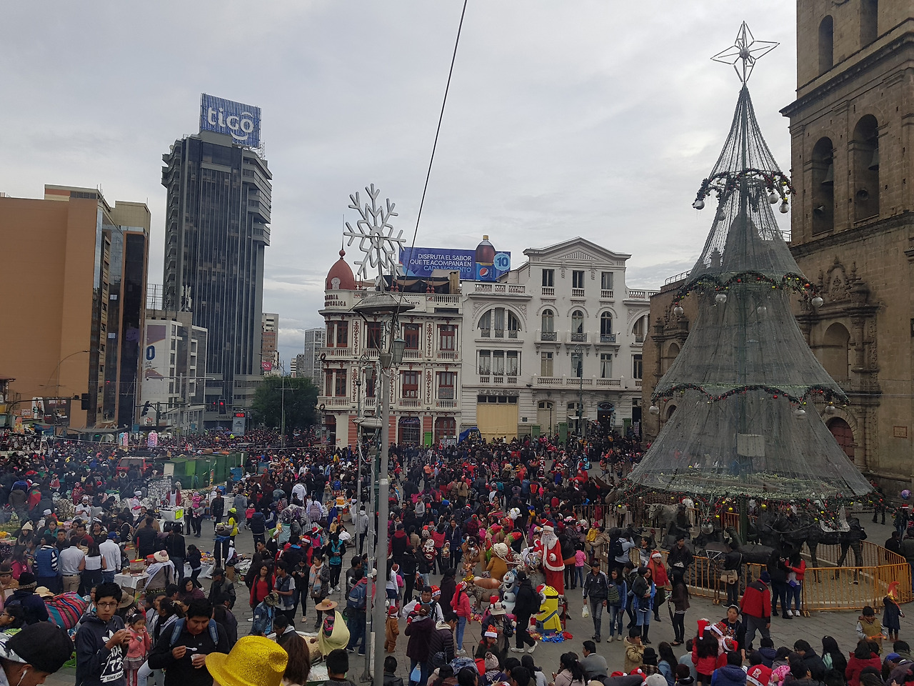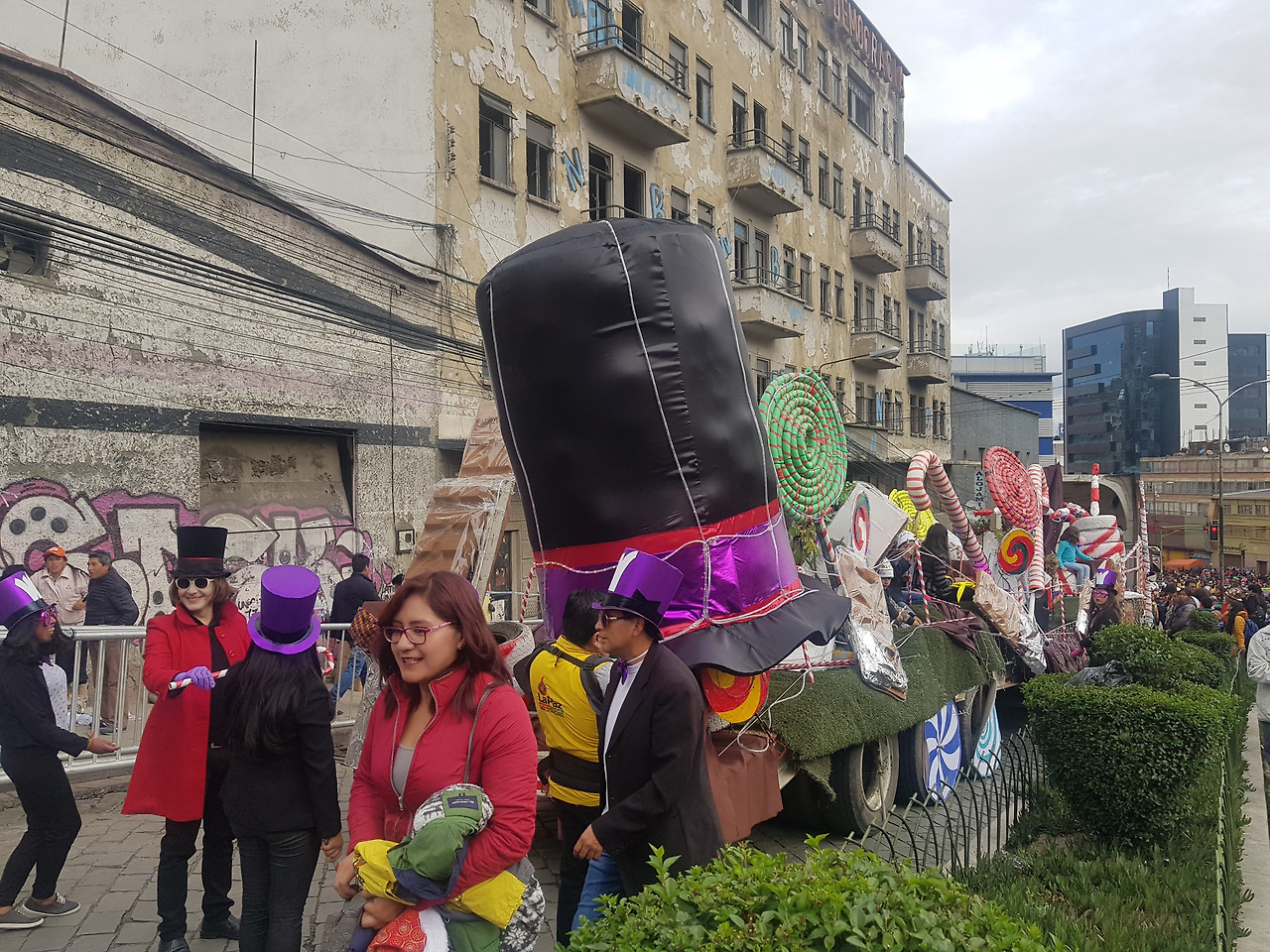 남미에서 이렇게 많은 사람을 한 번에 만난 적은 처음이자 마지막이었다. 마추픽추는 저리 가라 할 정도... 덕분에 야경 스폿에는 갈 수 없었지만 이 많은 현지인들과 함께 축제를 즐길 수 있었다. 우리는 여러 분장을 한 볼리비아인들이 신기했고 볼리비아 인들은 특이하게 생긴 동양인의 우리를 신기하게 생각해 서로서로 사진을 찍어달라 요청하면서 재밌게 놀았다. 물론 산타 누나들과의 사진도 잊지 않았다...