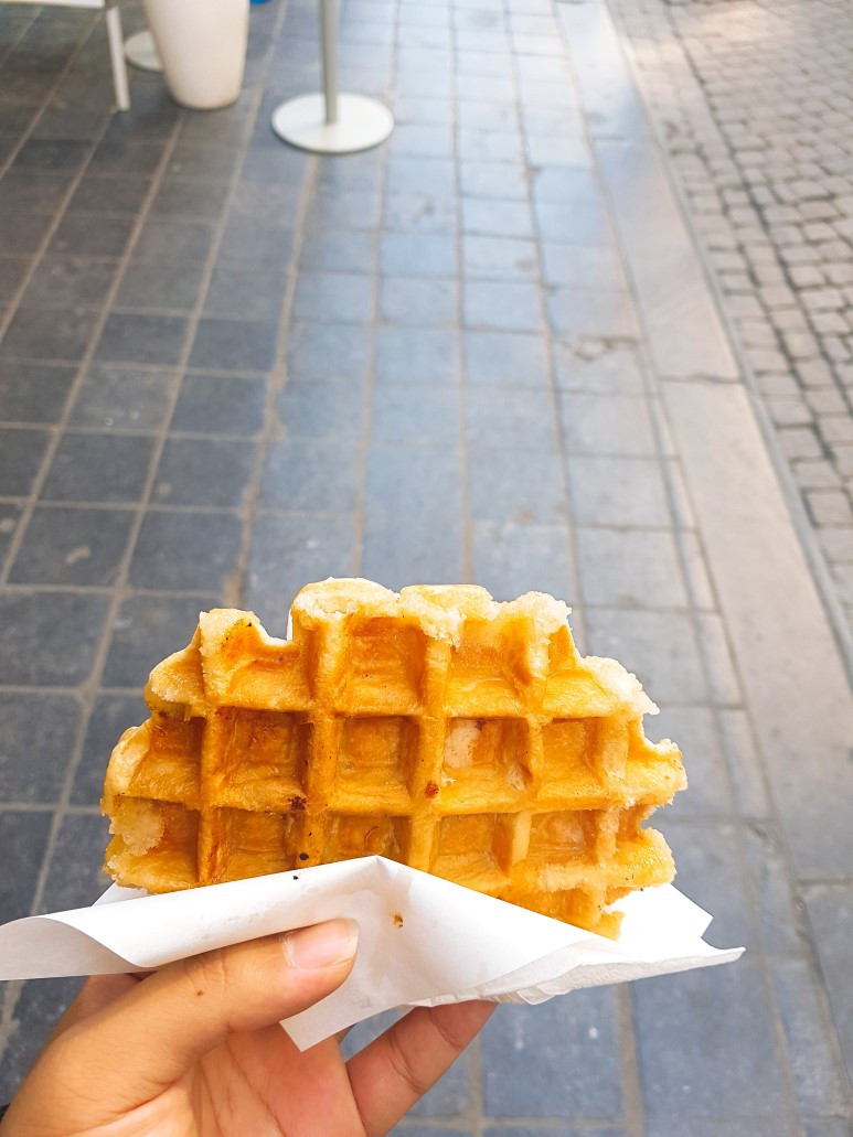 광장에 가서 제일 처음 한 일은 와플 먹기