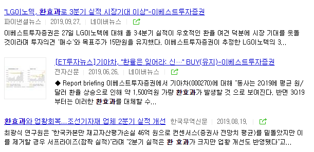 보다 구체적인 사례를 본다면, 미국의 화폐인 달러는 안전자산입니다. 전 세계에서 가장 경제적으로 높은 지위에 있는 나라이다 보니 미국이 망하리라 생각하기는 어렵기 때문이죠. 작년에는 미중 무역협상과 홍콩 시위 등 다양한 이슈로 인한 불확실성으로 인해 안전자산인 달러의 가치가 1100원 후반이나 1200원 초반 선에 머물렀습니다. 비교적 전년들 보다 높은 수치를 보여주면서 수출에 의존하는 기업들이 어려운 경제 상황 속에서도 환효과로 어닝 서프라이즈를 기록하곤 했습니다.