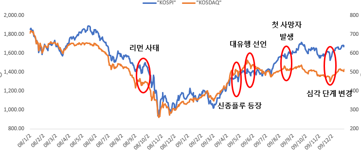 1) 우리나라는 수출비중이 높기 때문에 글로벌 이슈의 영향이 크다.